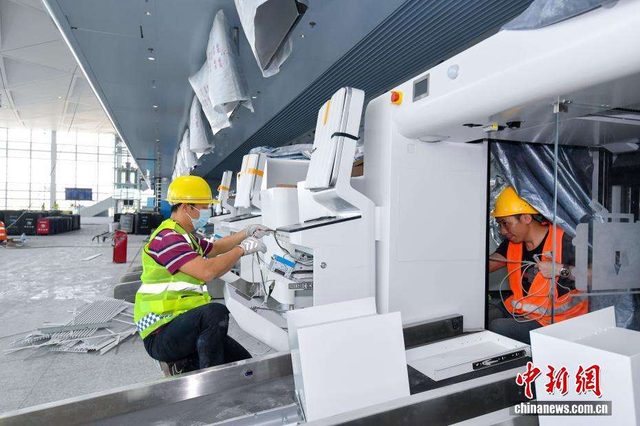 11月25日,工作人员在T3航站楼安装自助值机设备。中新网