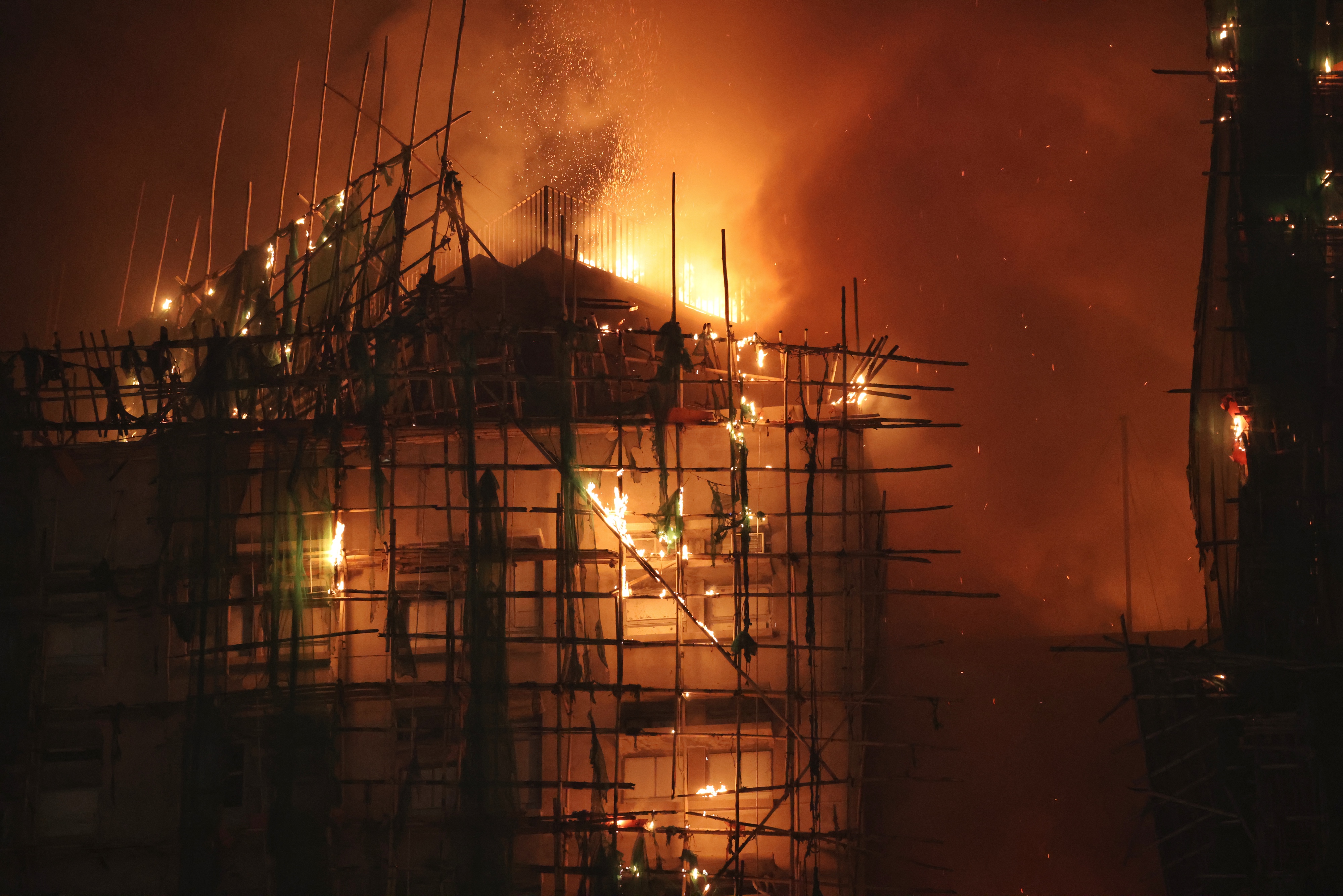 11月26日,宏昌阁外墙棚架率先起火,其后蔓延至宏泰阁及宏新阁等大厦。香港中通社