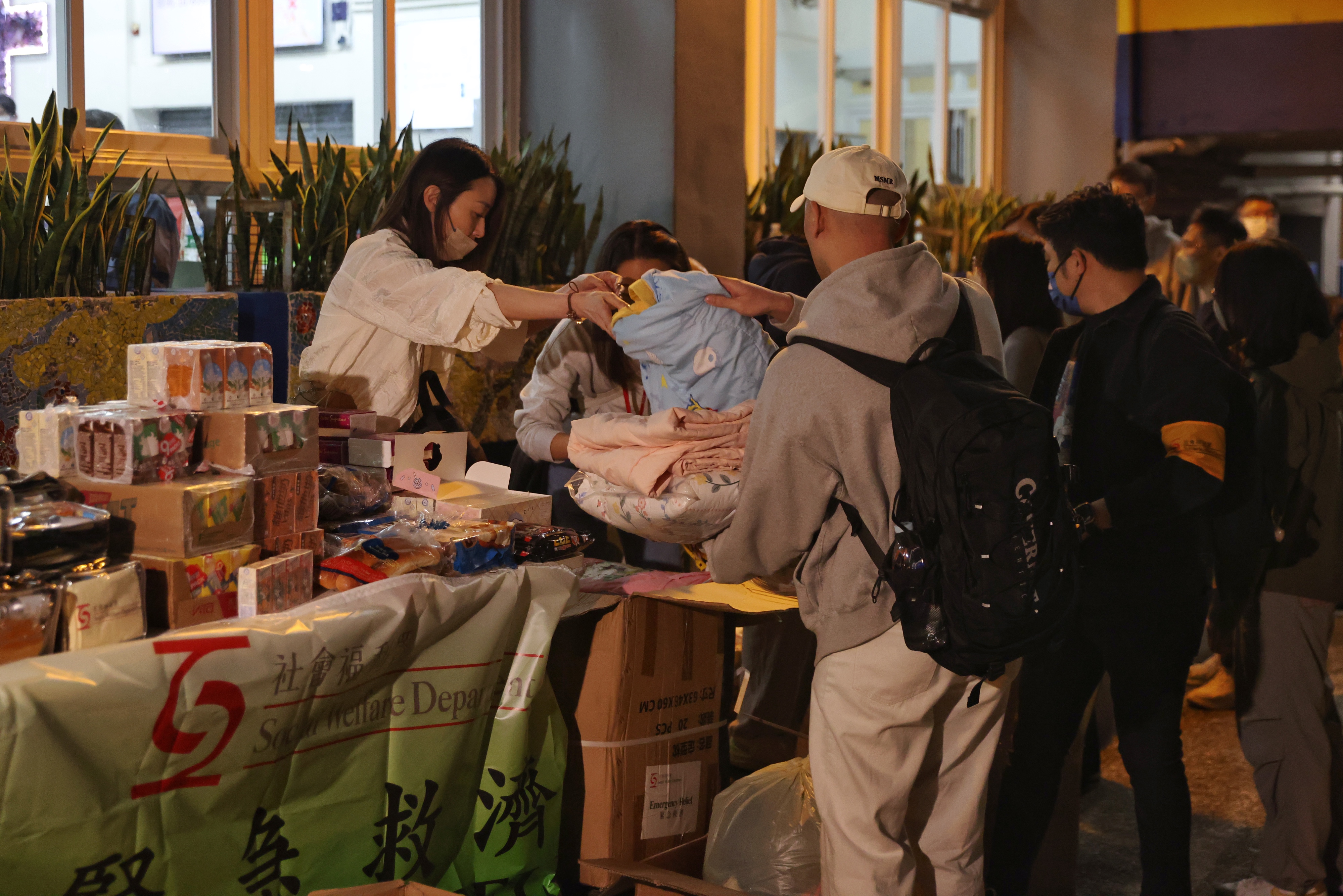 11月26日,临时庇护中心向受火警影响的居民发放食物、水、棉被等物资。香港中通社