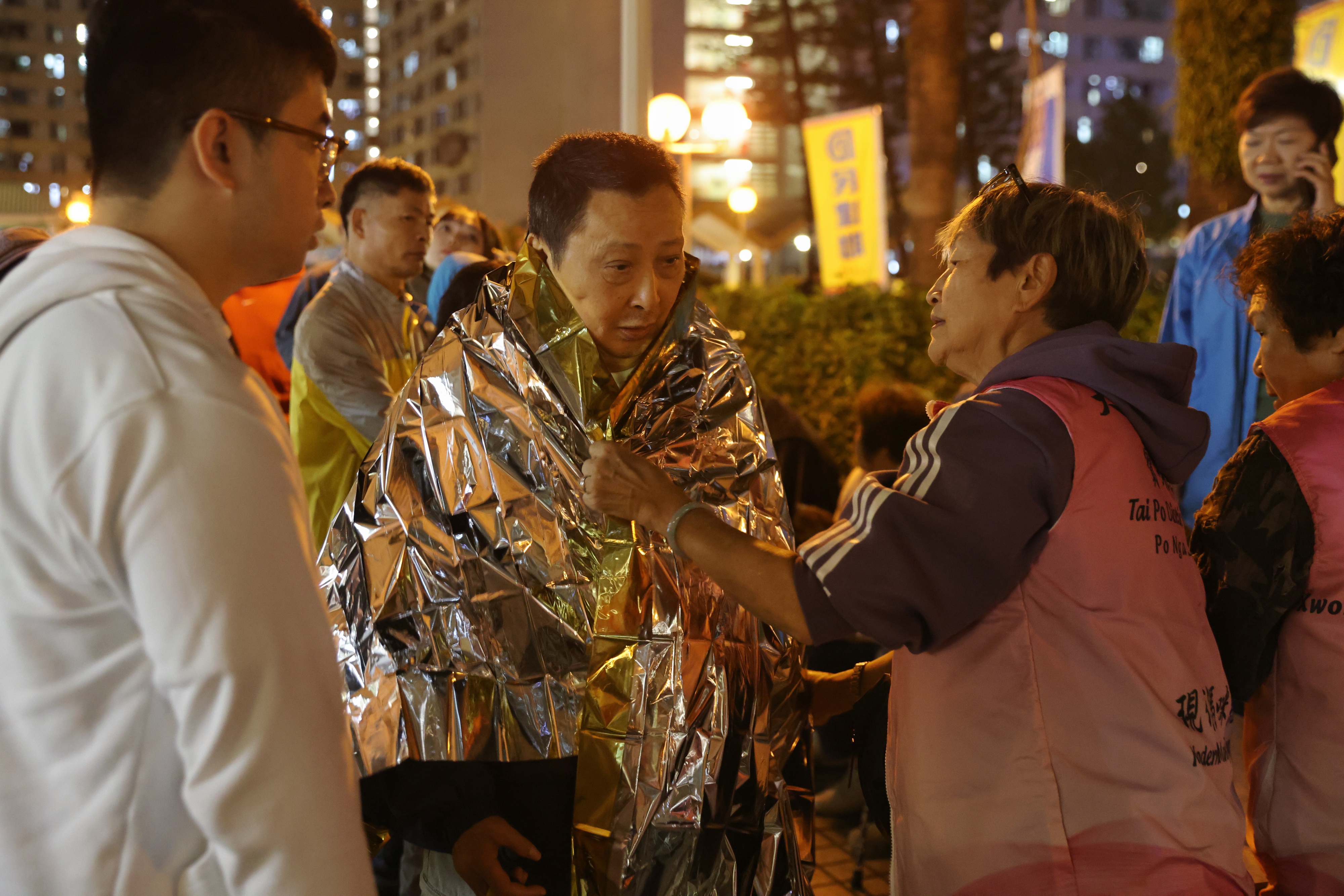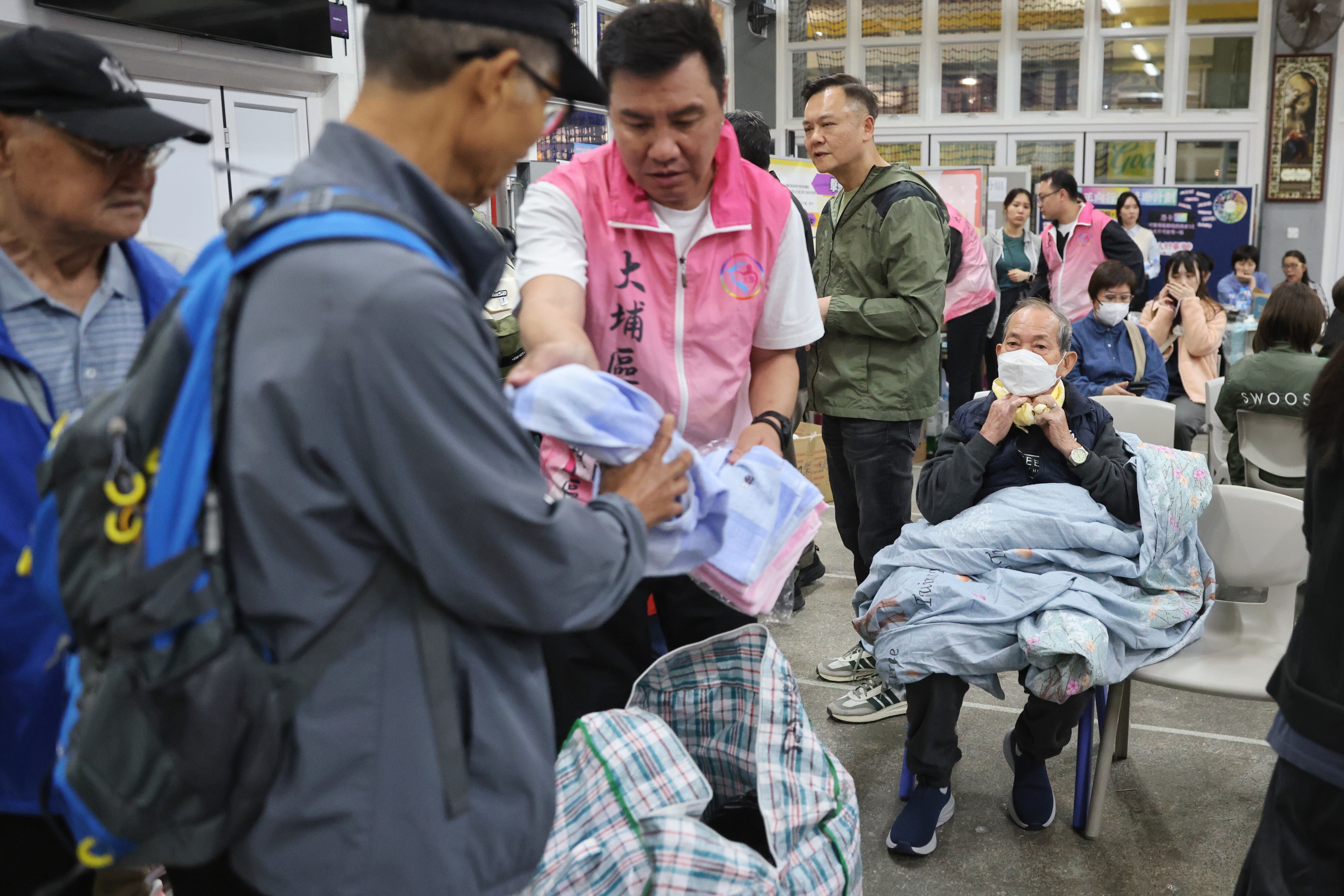11月26日,因应大埔宏福苑火警事故,香港特区政府已开放多个临时庇护中心和跨部门援助站,以安置疏散居民。图为关爱队向受火警影响的居民发放御寒物资。香港中通社