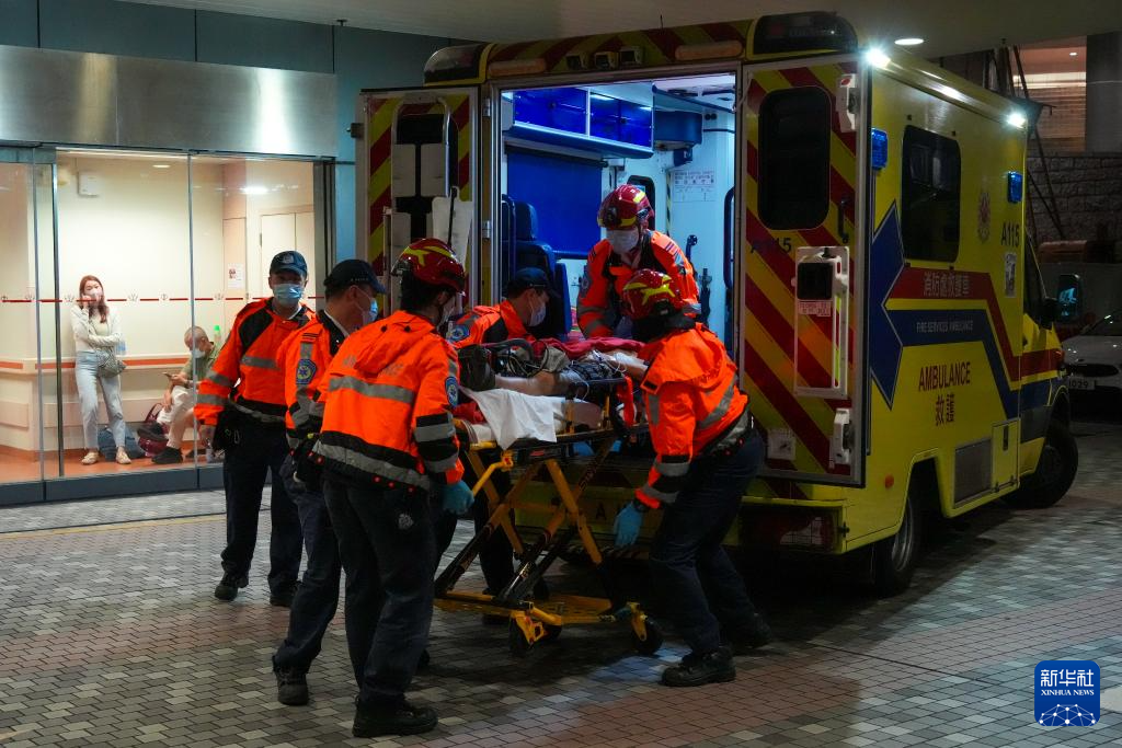 11月26日,一名火灾伤员被送至香港威尔斯亲王医院。新华社