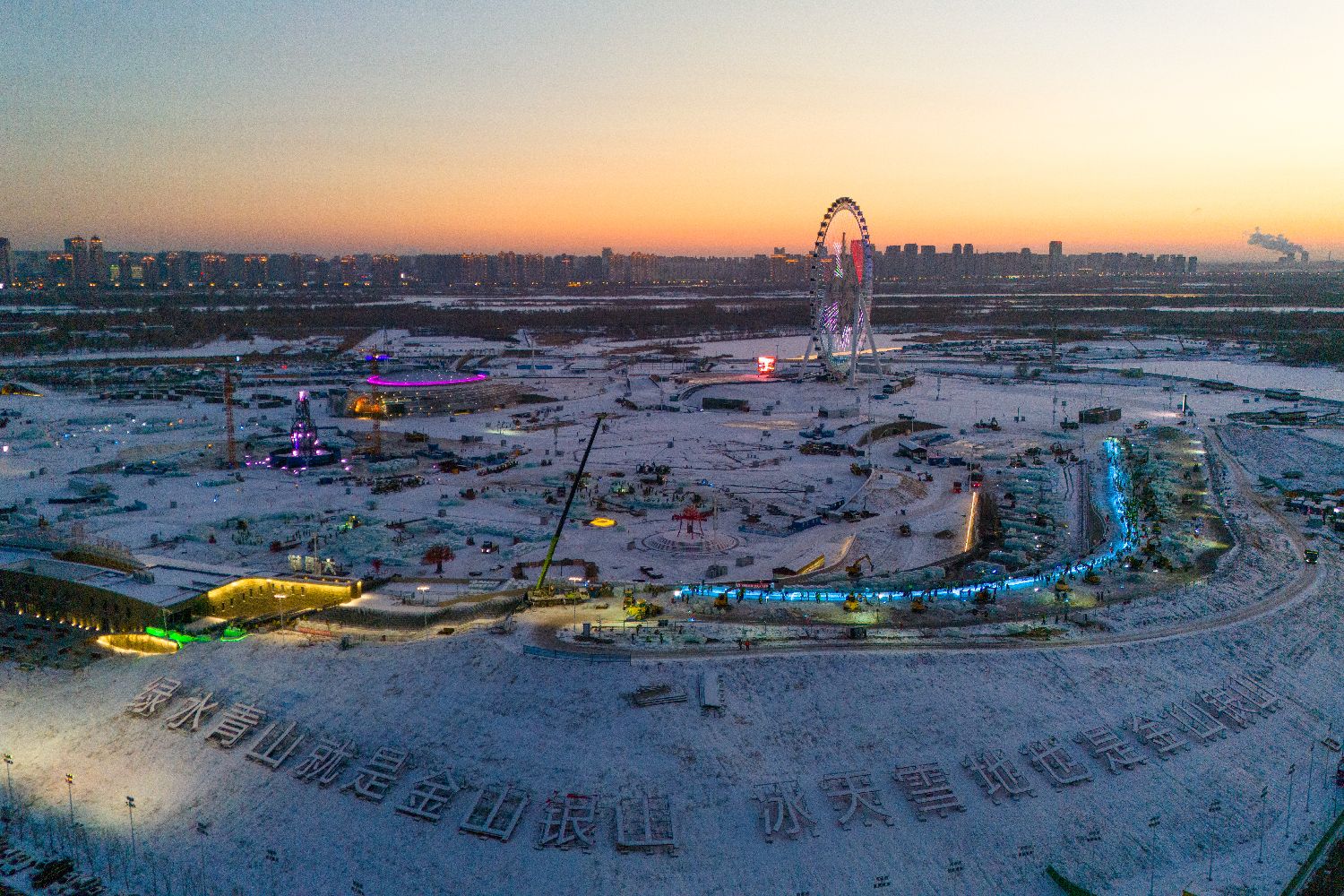 11月27日,冰雪大世界超级冰滑梯在建设中。中新社