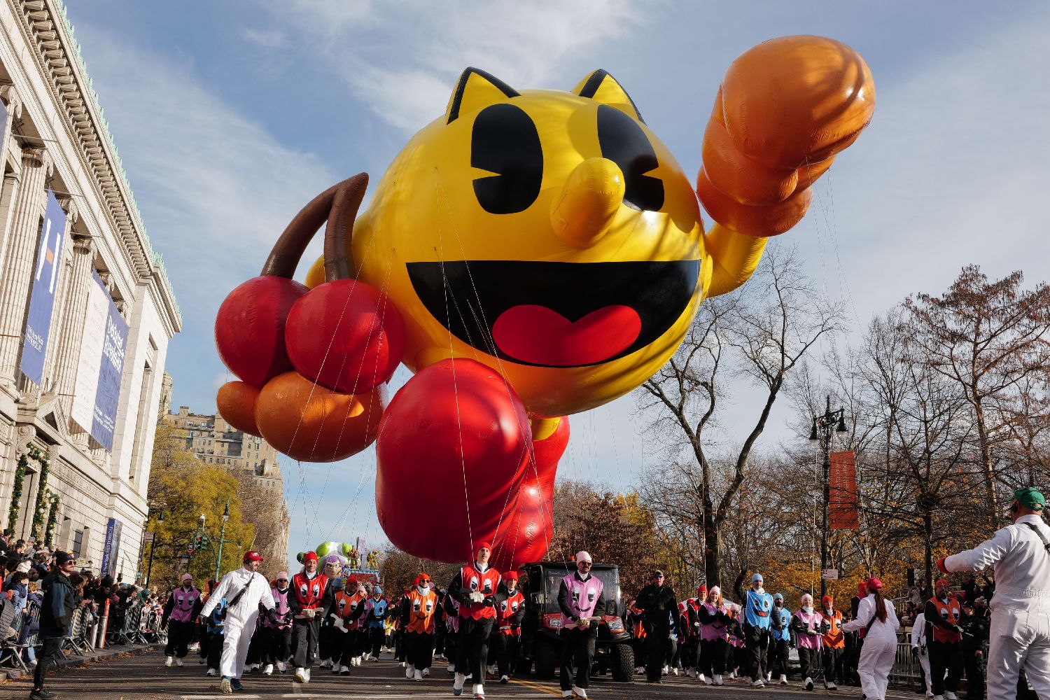 “吃豆人”巨型气球首次亮相纽约感恩节大游行。
