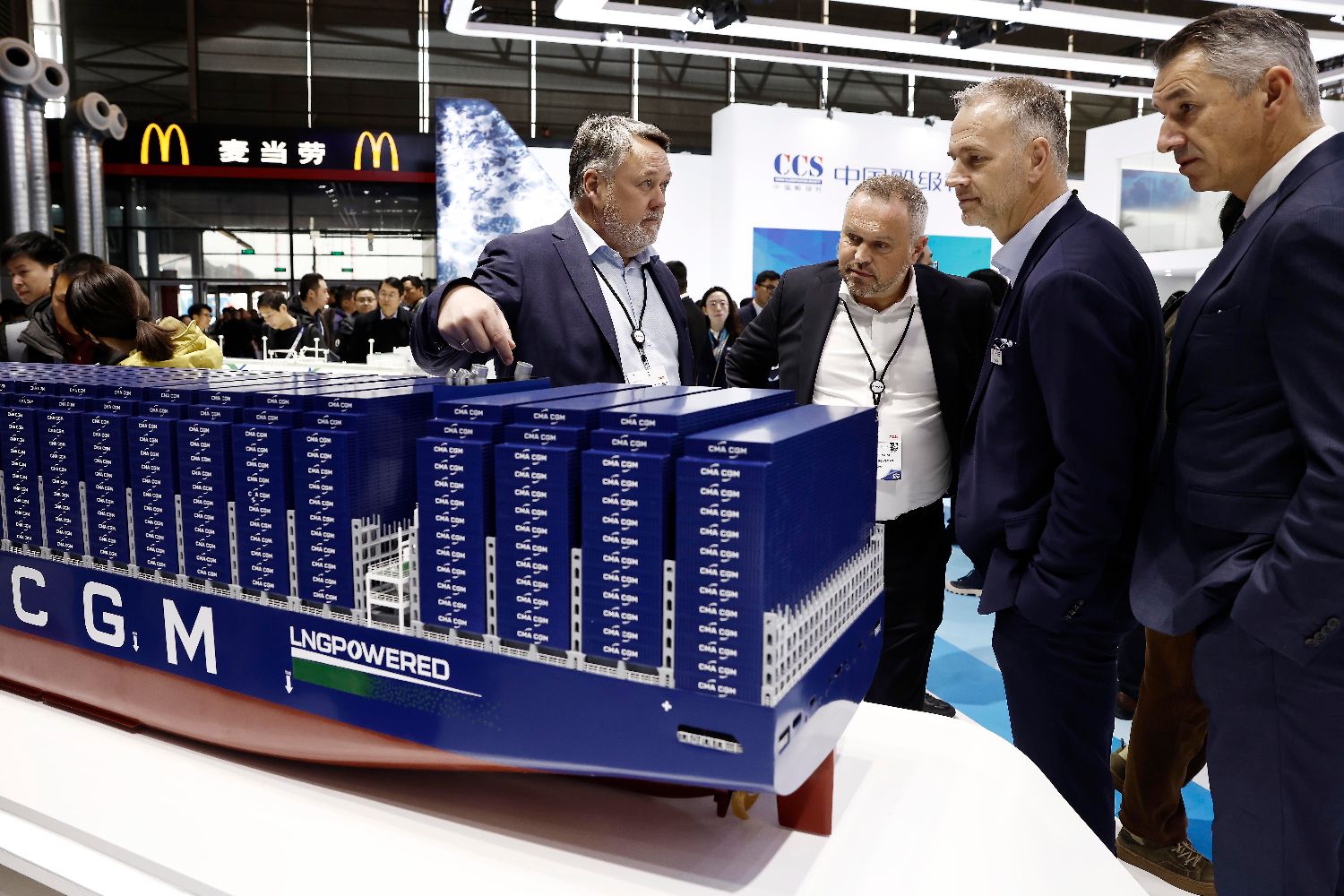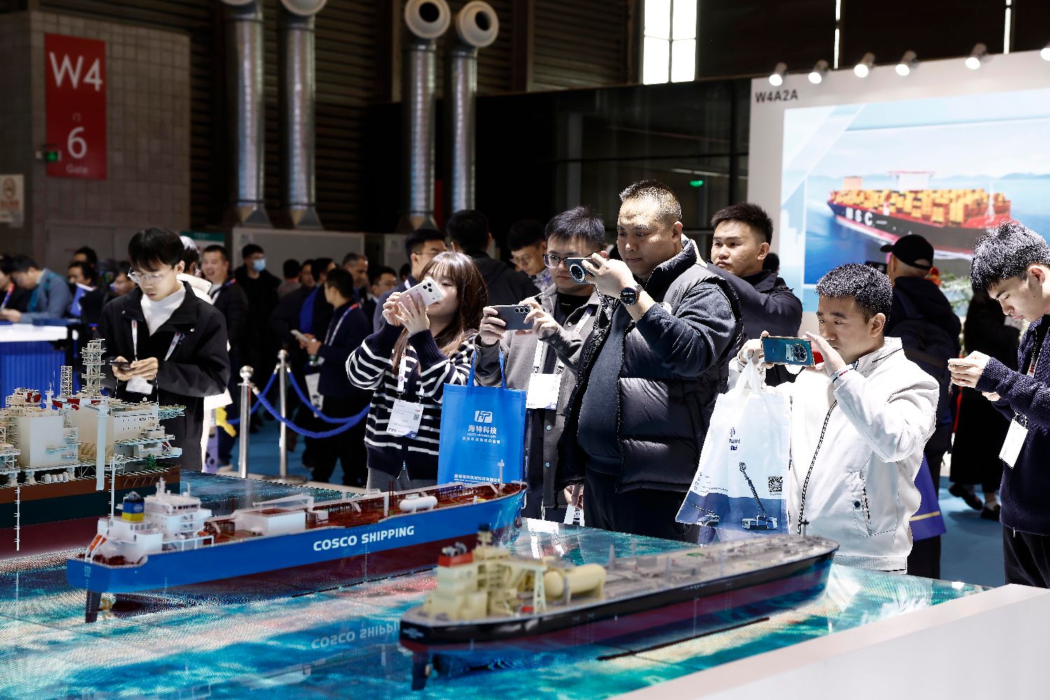 12月2日,以“创新与合作,共促海事业可持续发展”为主题的2025年中国国际海事会展在上海举行,本届会展展览面积近11万平方米,吸引了包括丹麦、挪威、德国等16个国家和地区的全球超过2200家企业参展。图为观众用手机拍摄各类运输船模型。中新社