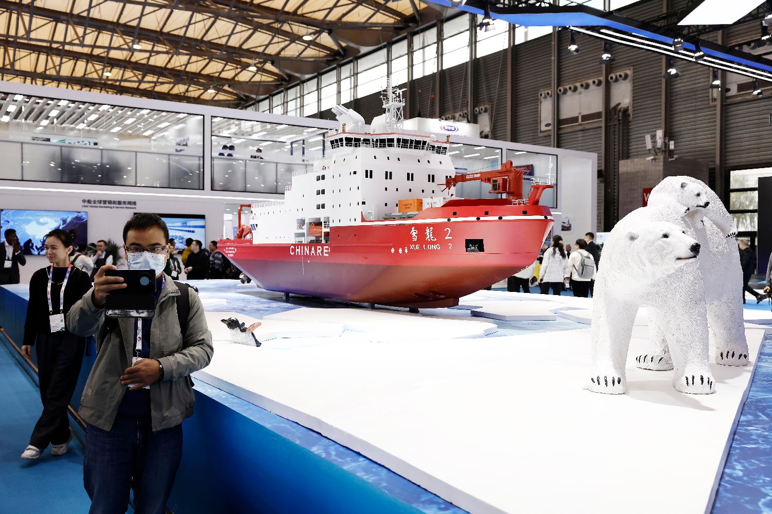 12月2日,观众拍摄中国第一艘自主建造的极地科学考察破冰船——雪龙2号模型。中新社