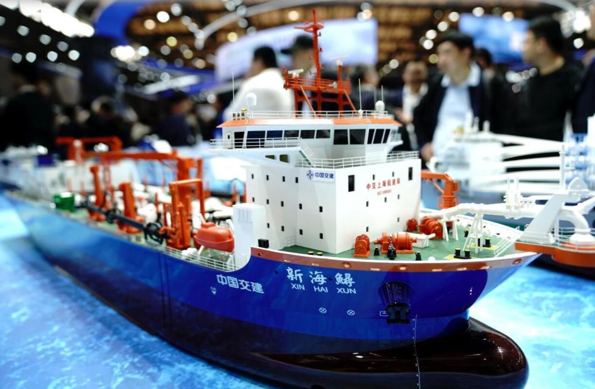 中国国际海事会展上的“新海鲟”号模型。新华社