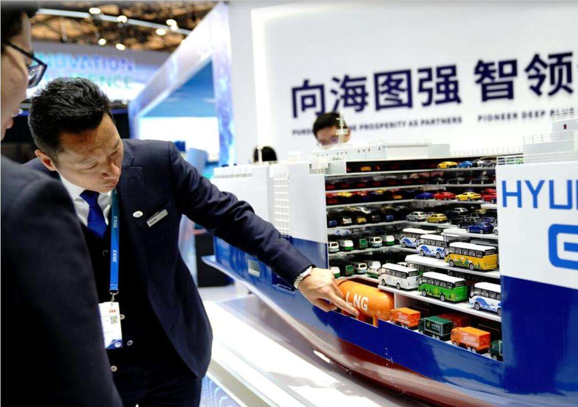12月2日,在中国国际海事会展上,参展商介绍汽车运输船内部情况。新华社