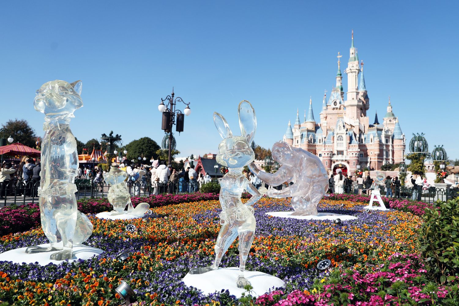 12月4日,在上海迪士尼度假区举行的“迪士尼奇幻冬日季”主题活动吸引游客。图为以迪士尼朋友为灵感的全新冰雕吸引游客。中新社