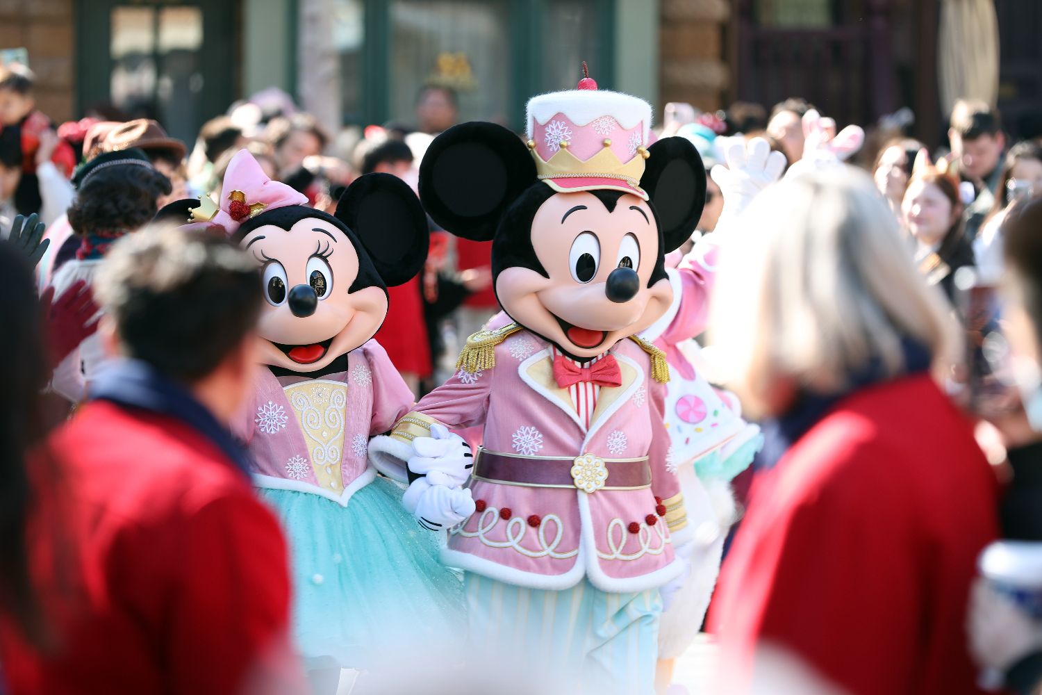 12月4日,米奇携手米妮与游客互动。中新社