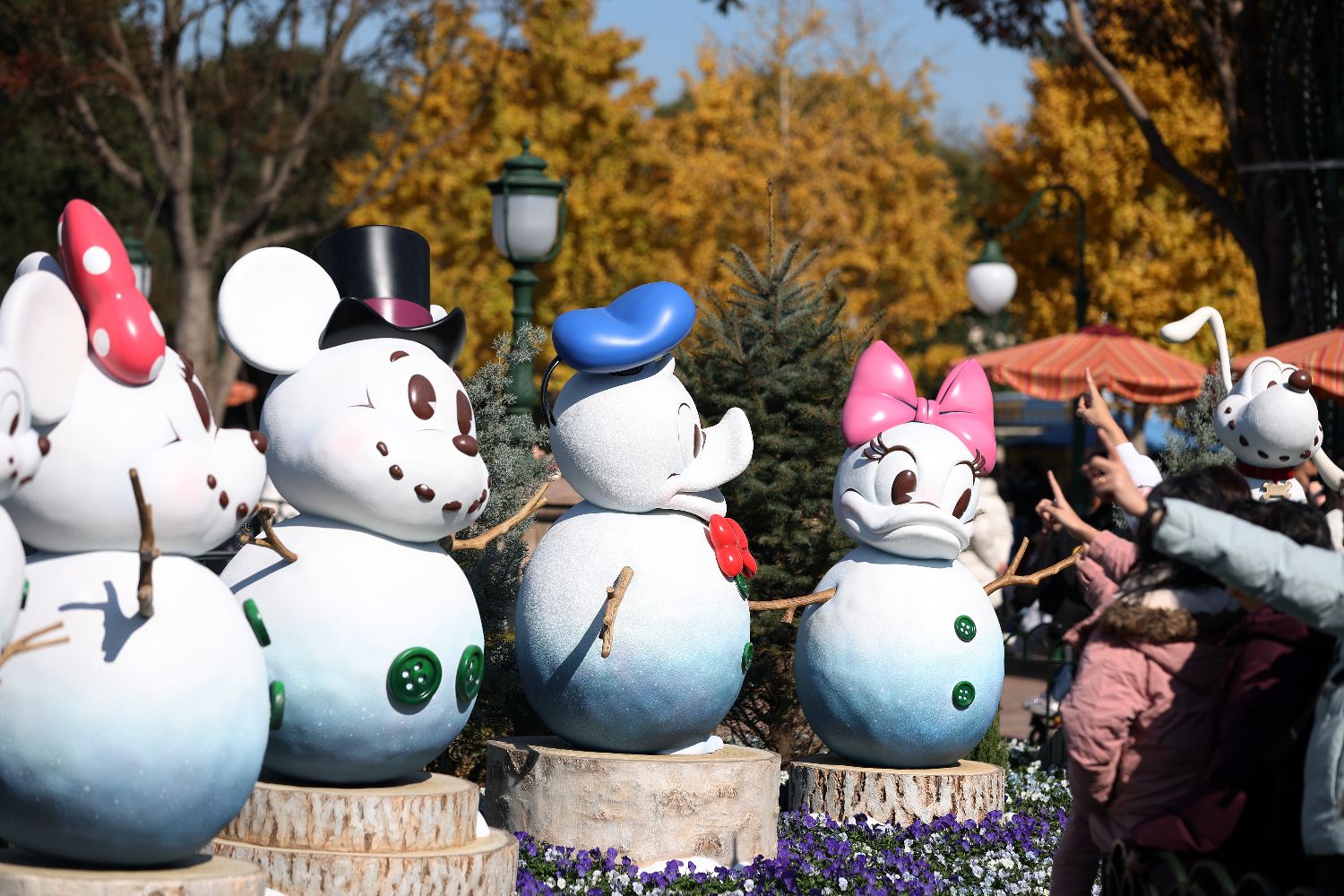 12月4日,以迪士尼朋友为灵感的“雪人”吸引游客。中新社