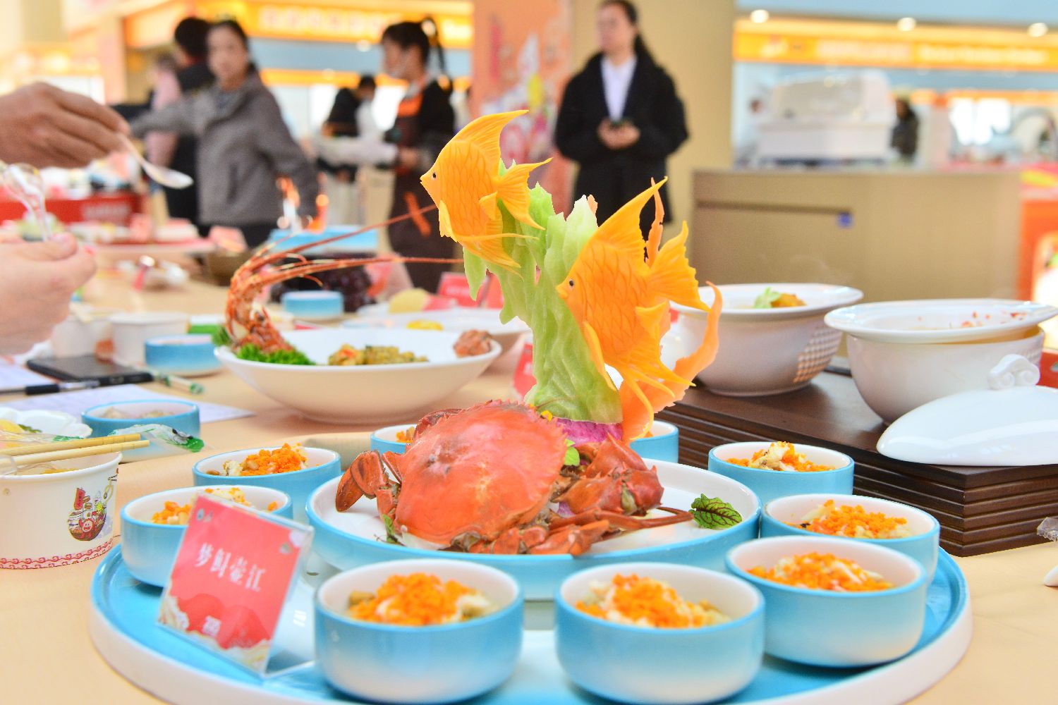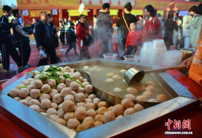台湾美食新竹大鱼丸亮相美食展。中新网