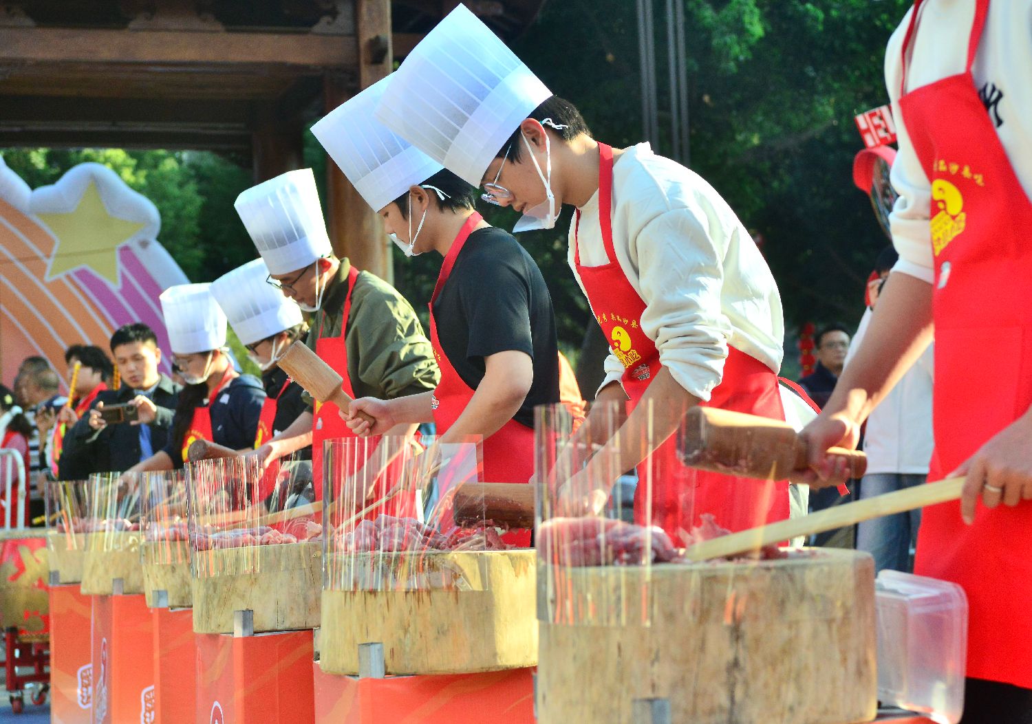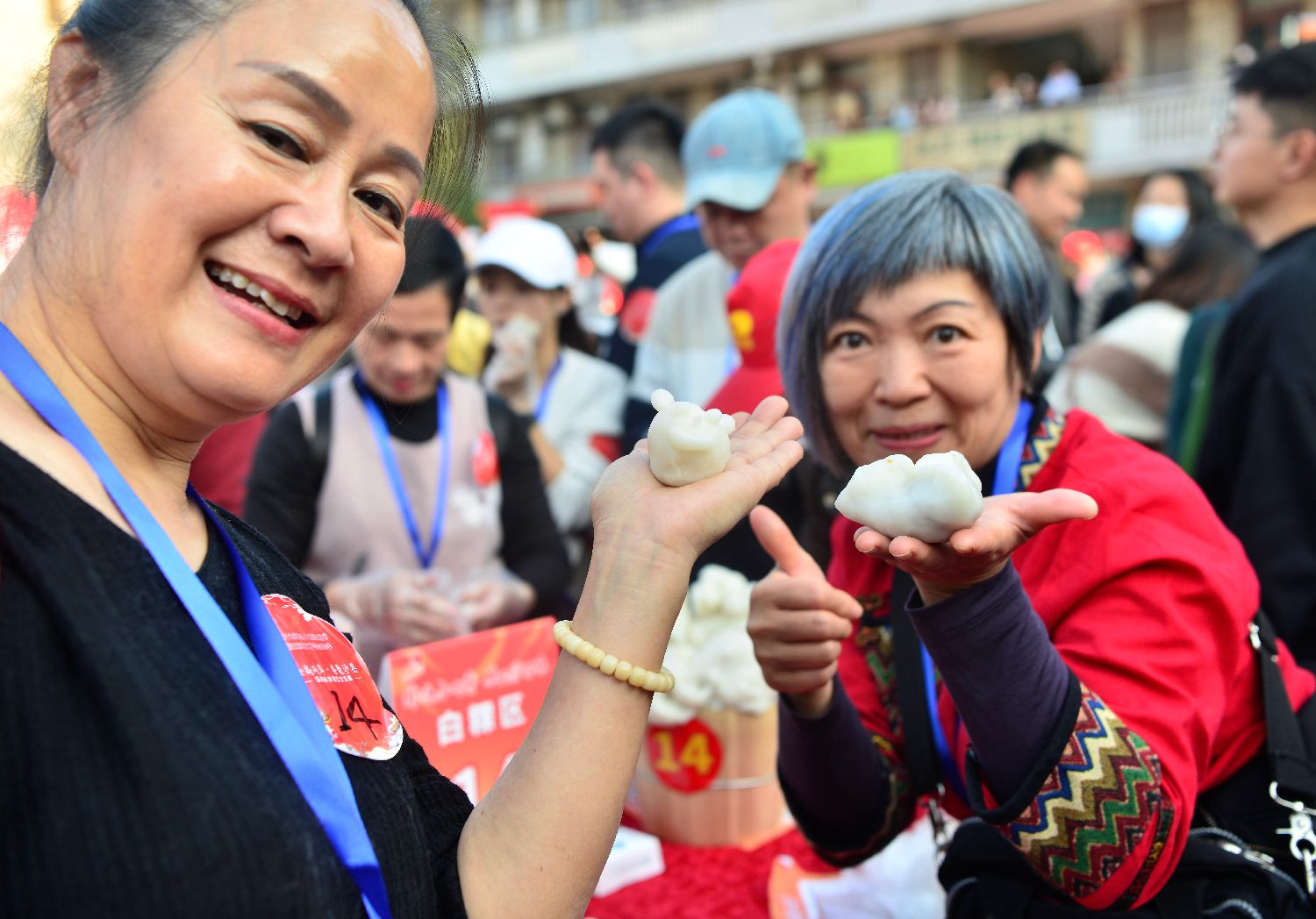 12月7日,“非遗小吃秀 共品沙县味”沙县小吃技艺千人体验活动举行。图为参加活动的嘉宾在包扁肉。中新网