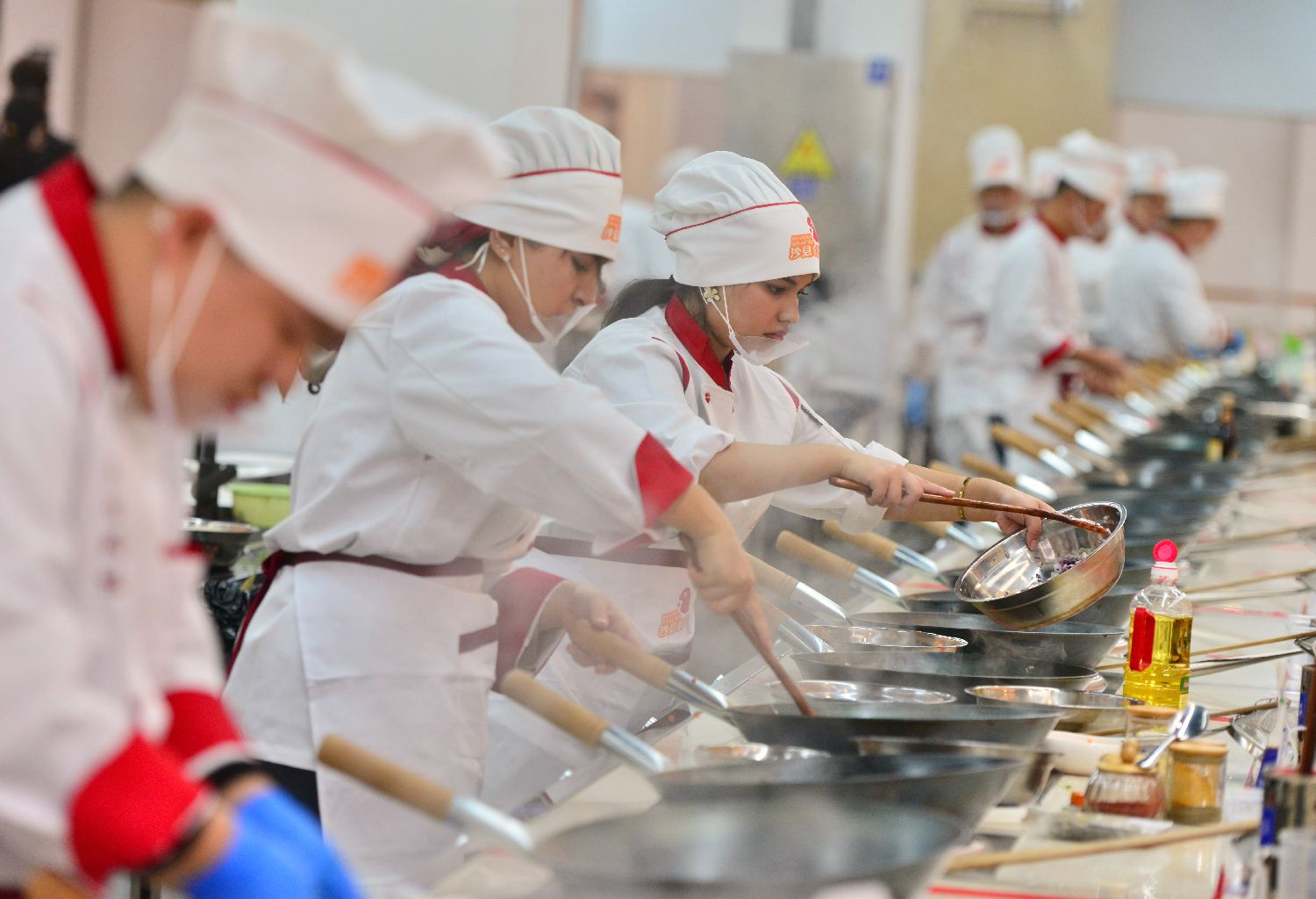 参赛队伍在制作菜品。中新社