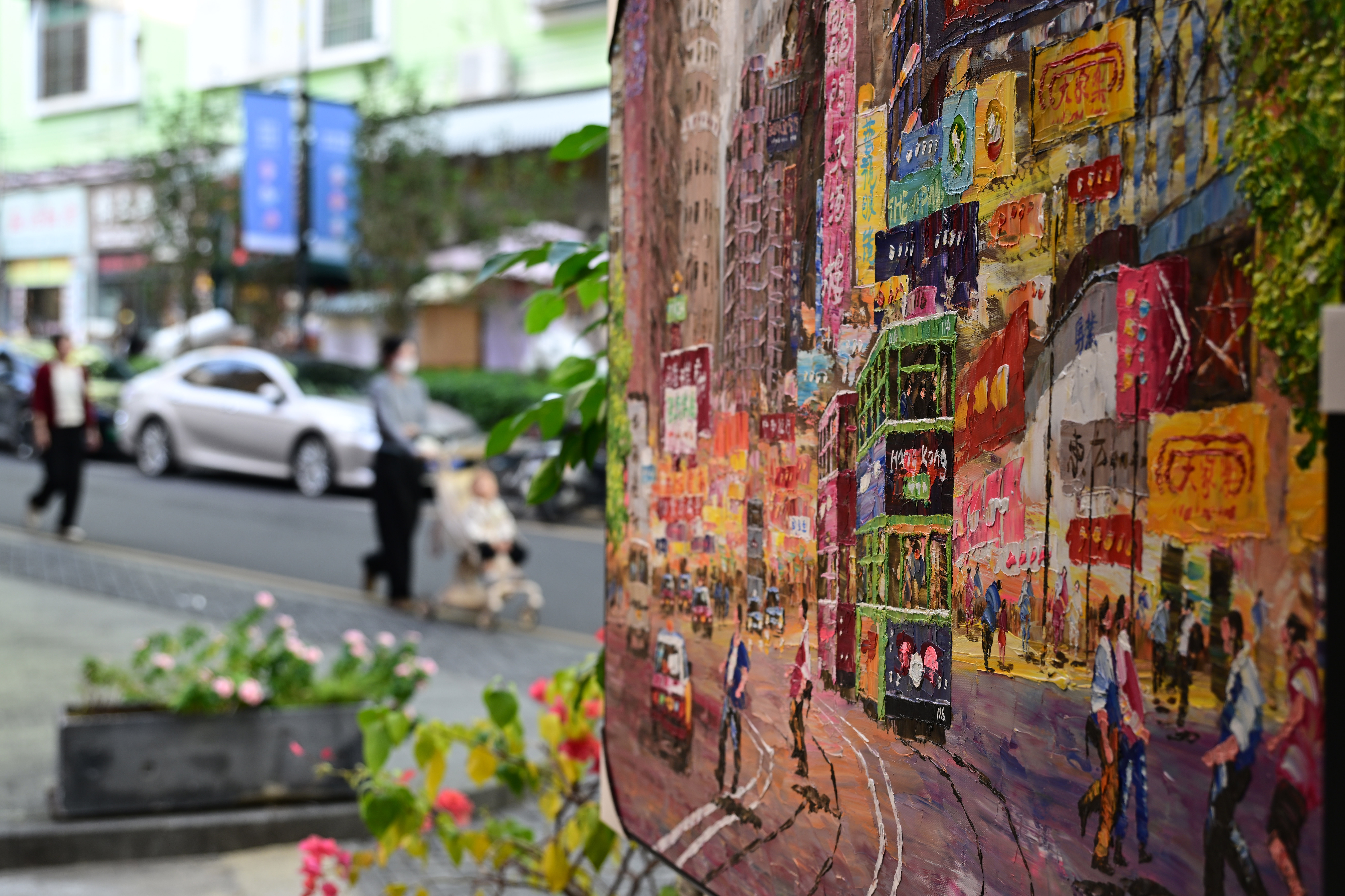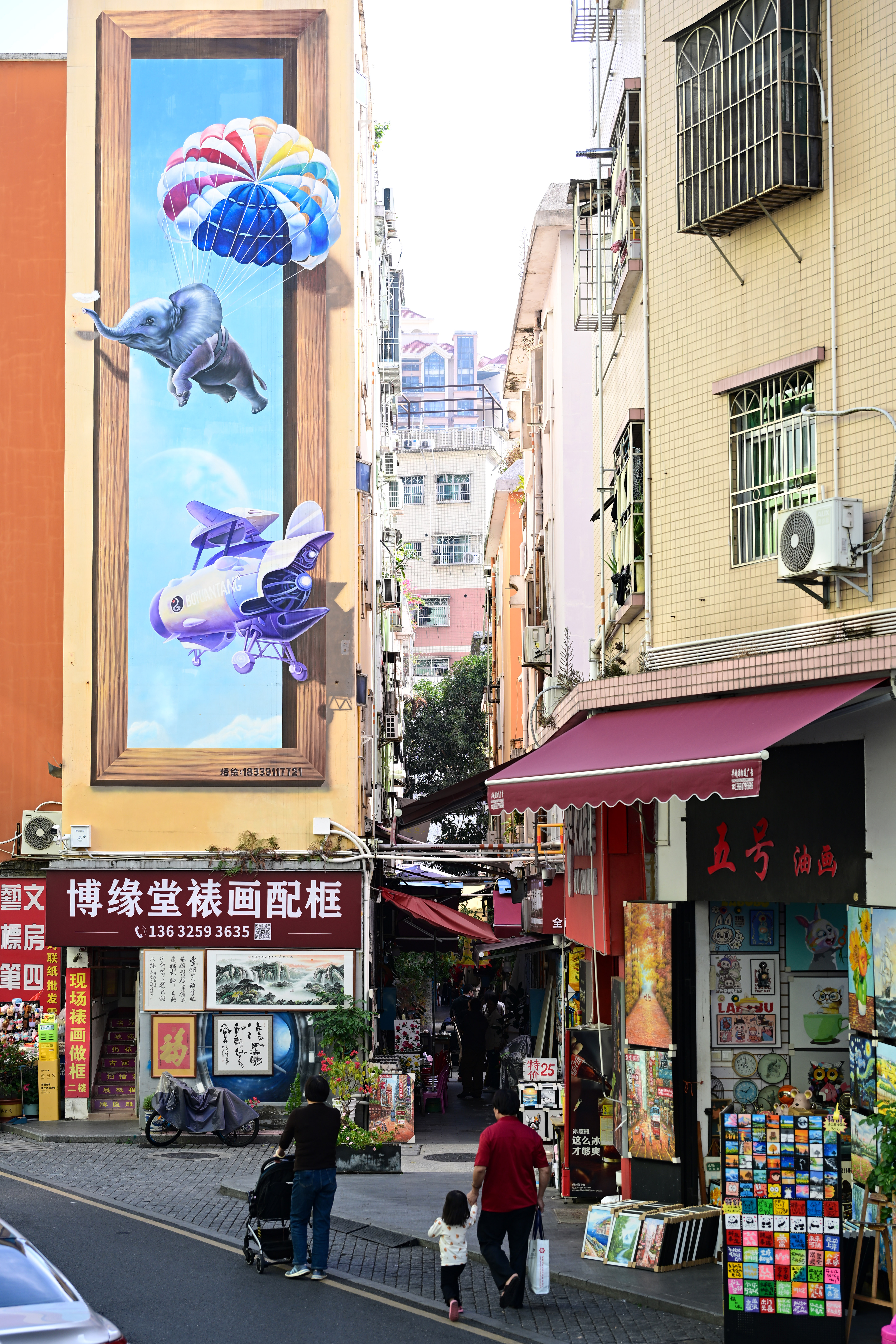 12月11日,游客在大芬油画村拍摄油画。中新社