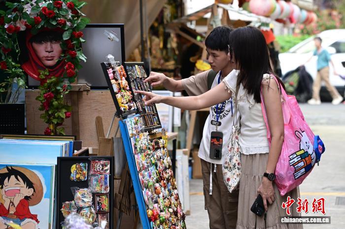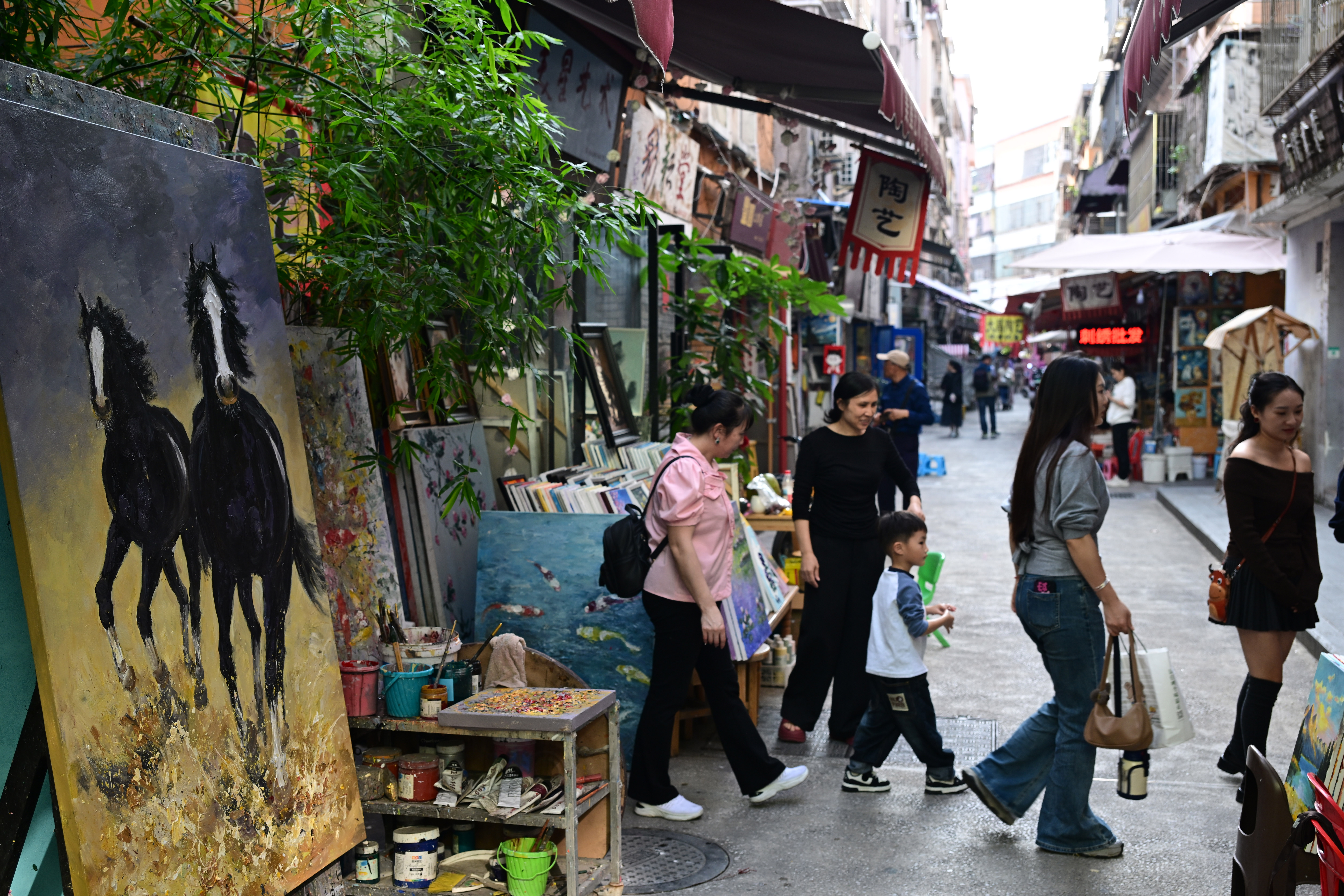 12月11日,游客在大芬油画村选购油画衍生商品。中新网