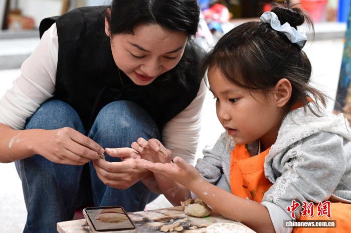 12月11日,家长和小朋友在大芬油画村体验陶艺制作。中新网