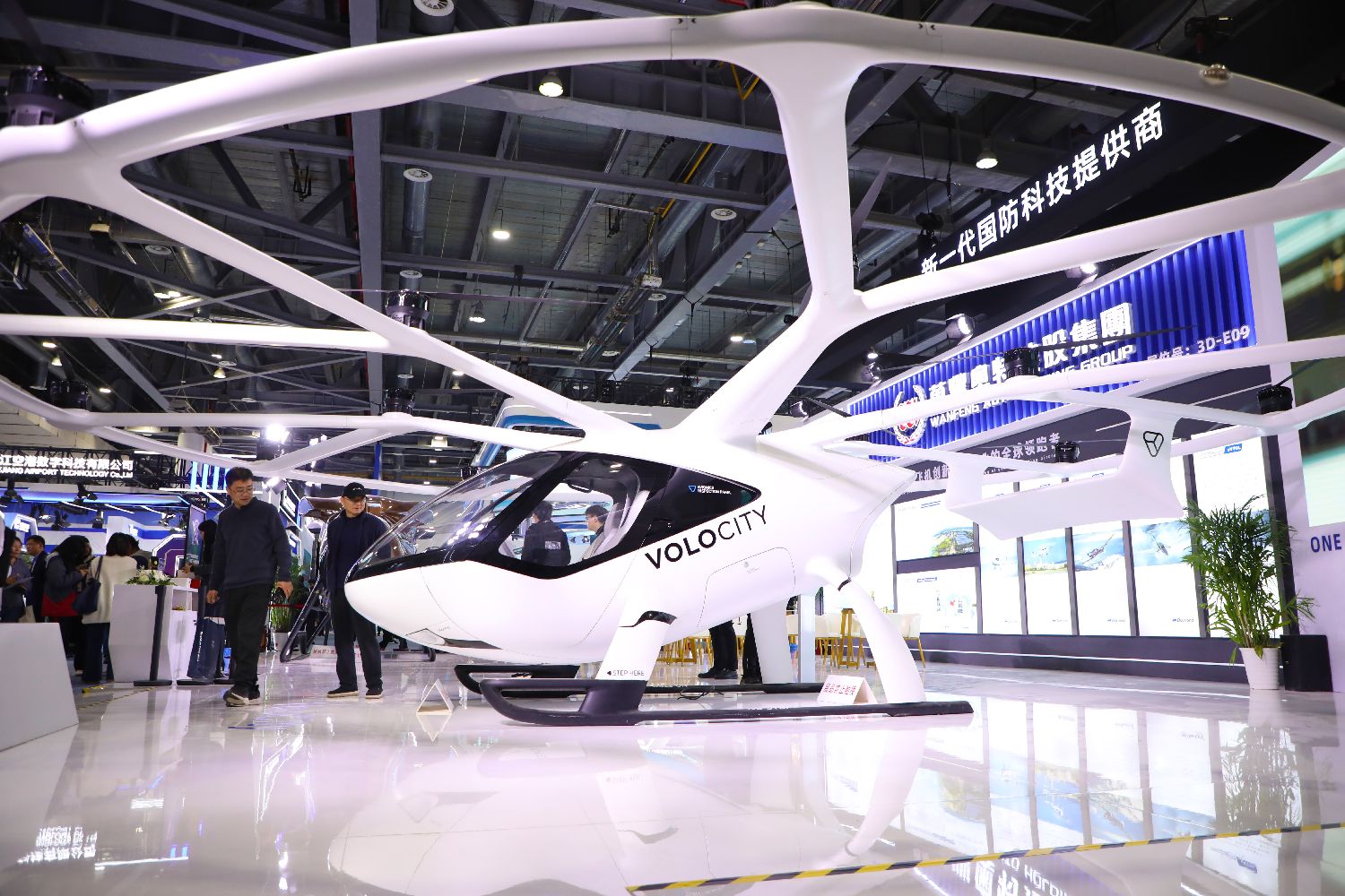 12月11日,第七届浙江国际智慧交通产业博览会在杭州开幕,本届博览会集中展示了公路轨道、低空经济、航运服务等领域的695项新技术、新产品、新装备。图为全球首款EASA认证电动空中出租车亮相展会。中新社