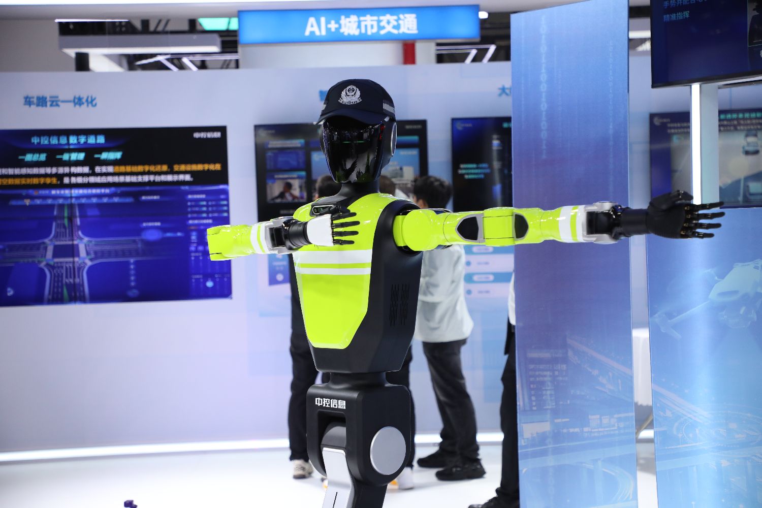 12月11日,已在杭州落地应用的AI交通管理机器人亮相展会。中新社