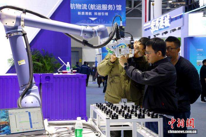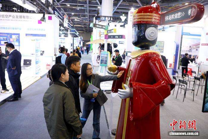 12月11日,观众了解具有指路功能的AI服务机器人。中新网