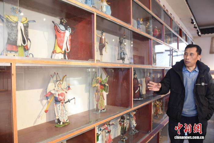 12月14日,陈氏面塑第五代传承人陈道勇在介绍面塑作品。