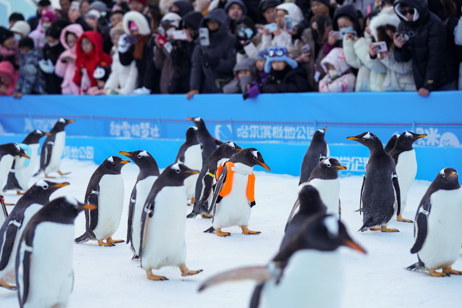 12月13日,黑龙江哈尔滨极地公园举行“淘学企鹅”冰雪大巡游,100只南极企鹅在雪地上漫步,吸引游客。作为哈尔滨极地公园原创冰雪文旅IP,此次“淘学企鹅”冰雪大巡游打破以往规模纪录,为游客带来一场冰雪奇趣体验。中新社