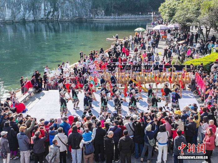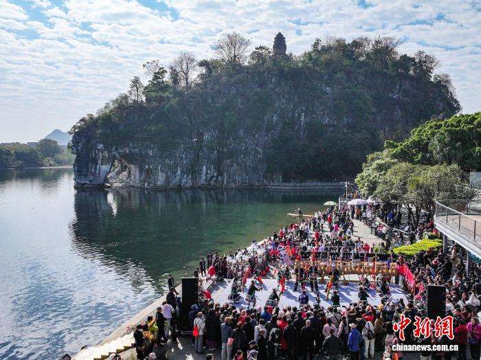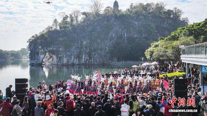 12月15日,“欢庆侗年·品味龙胜”农文旅推介活动在广西桂林市象鼻山景区举行。本次活动通过《舞草龙》《芦笙踩堂》《长发瑶》等非遗歌舞与民俗情景表演,以多元形式推动农文旅深度融合,助力桂林打造世界级旅游城市与民族文化旅游示范区,生动呈现龙胜丰富的民族文化底蕴。图为龙胜平等镇广南侗寨《舞草龙》表演。