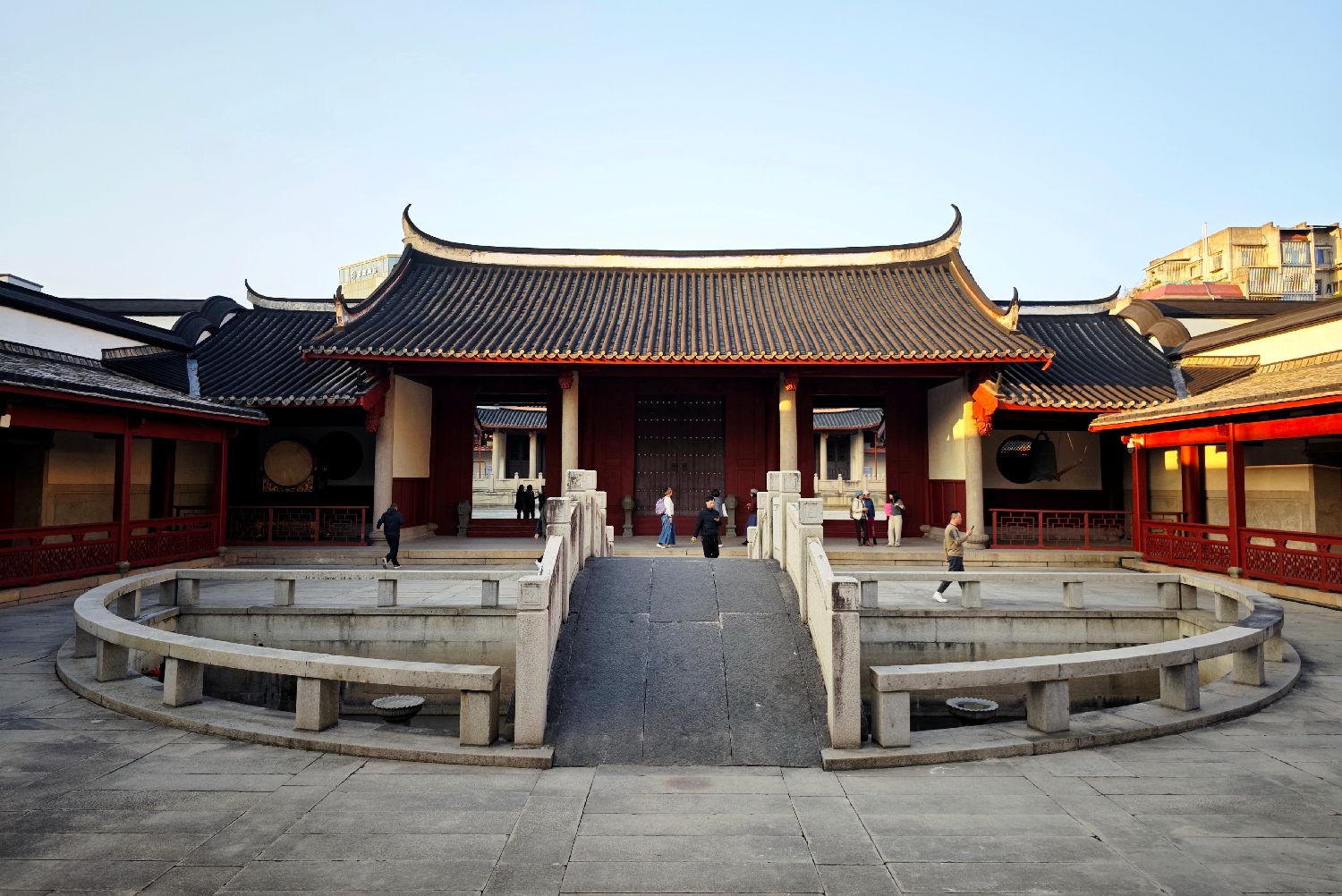 12月16日,福建福州,始建于唐初的福州文庙在历时一年多的修缮后重新对外开放。福州文庙占地7552平方米,建筑面积约4000平方米。图为市民在福州文庙游览。中新社