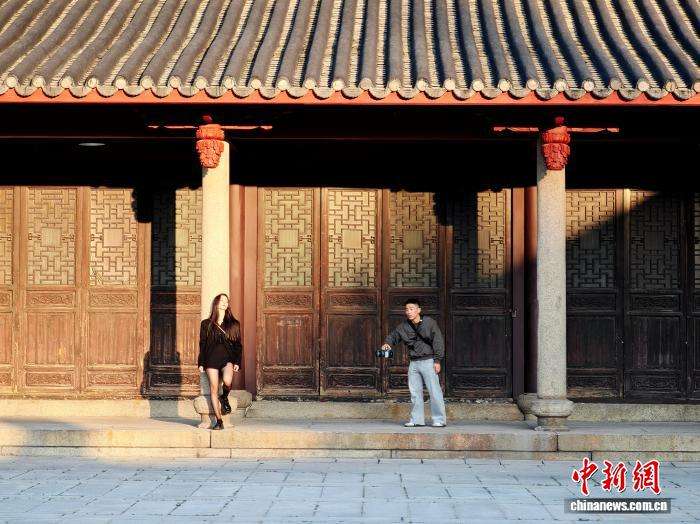 12月16日,游客在福州文庙游览拍照。中新网