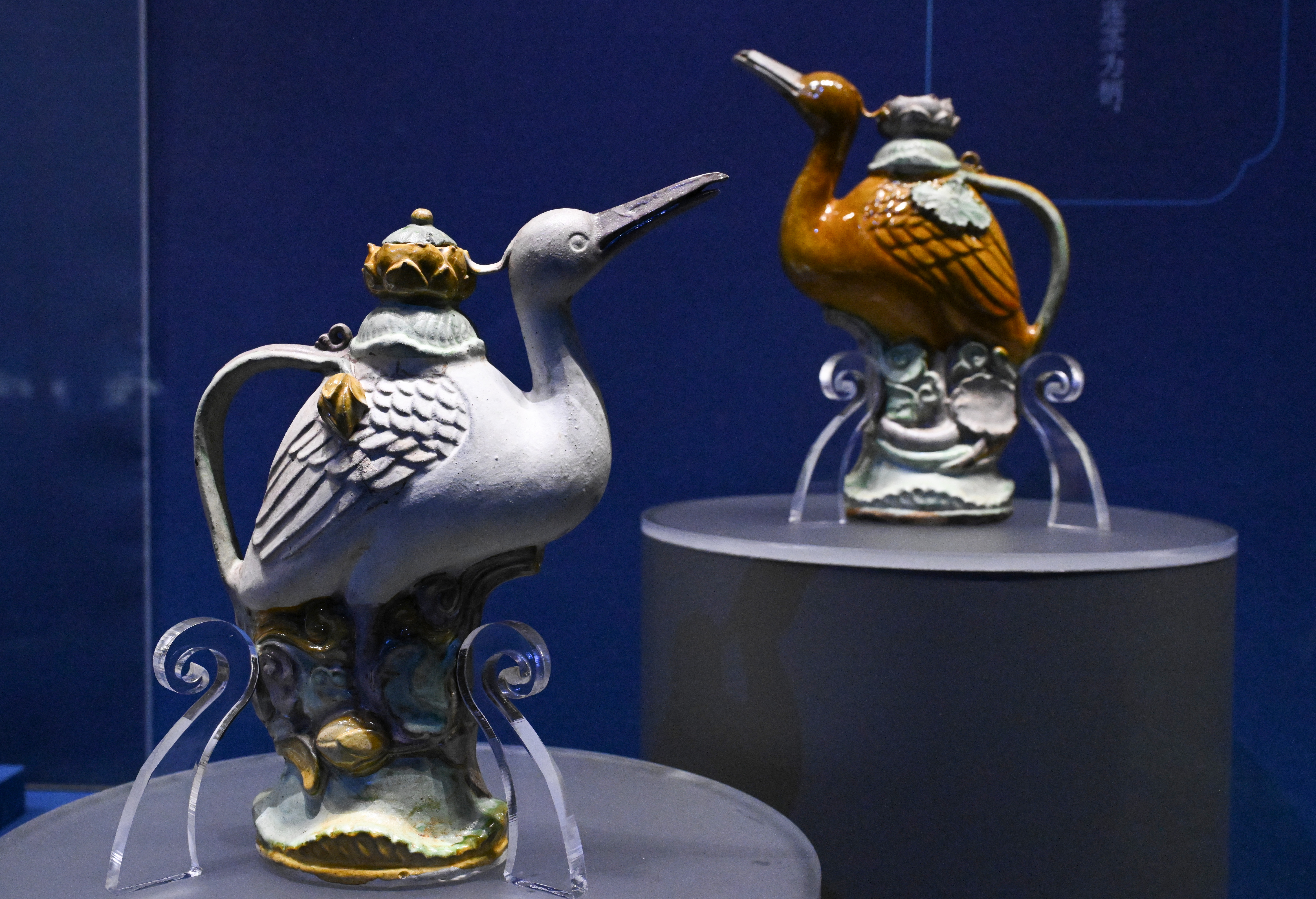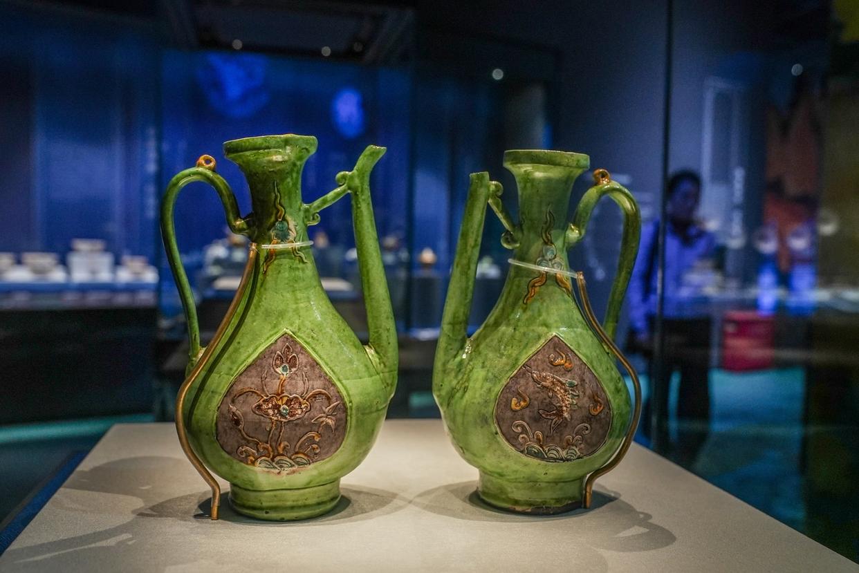 珐华绿釉贴金莲池纹执壶。北京日报客户端