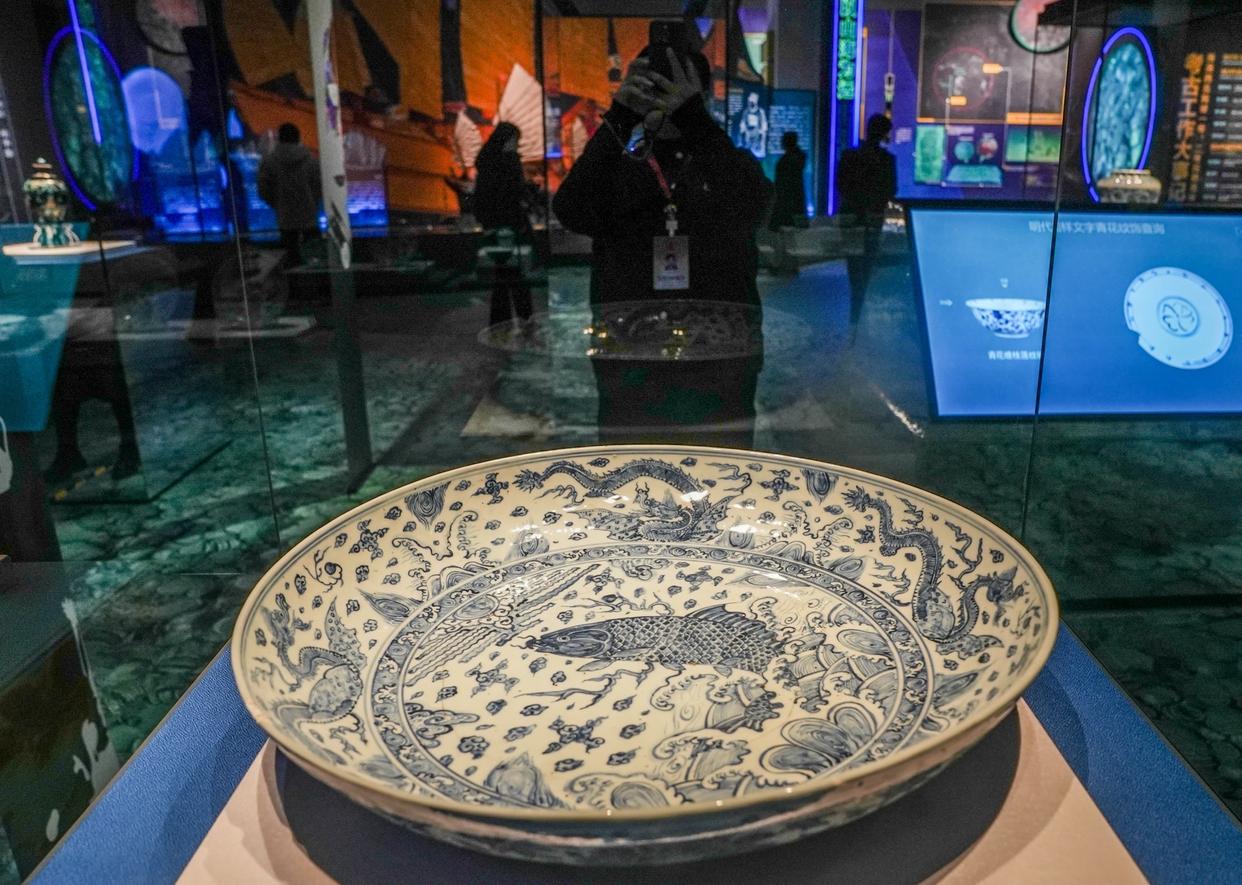 青花鱼跃龙门应龙纹大盘。北京日报客户端