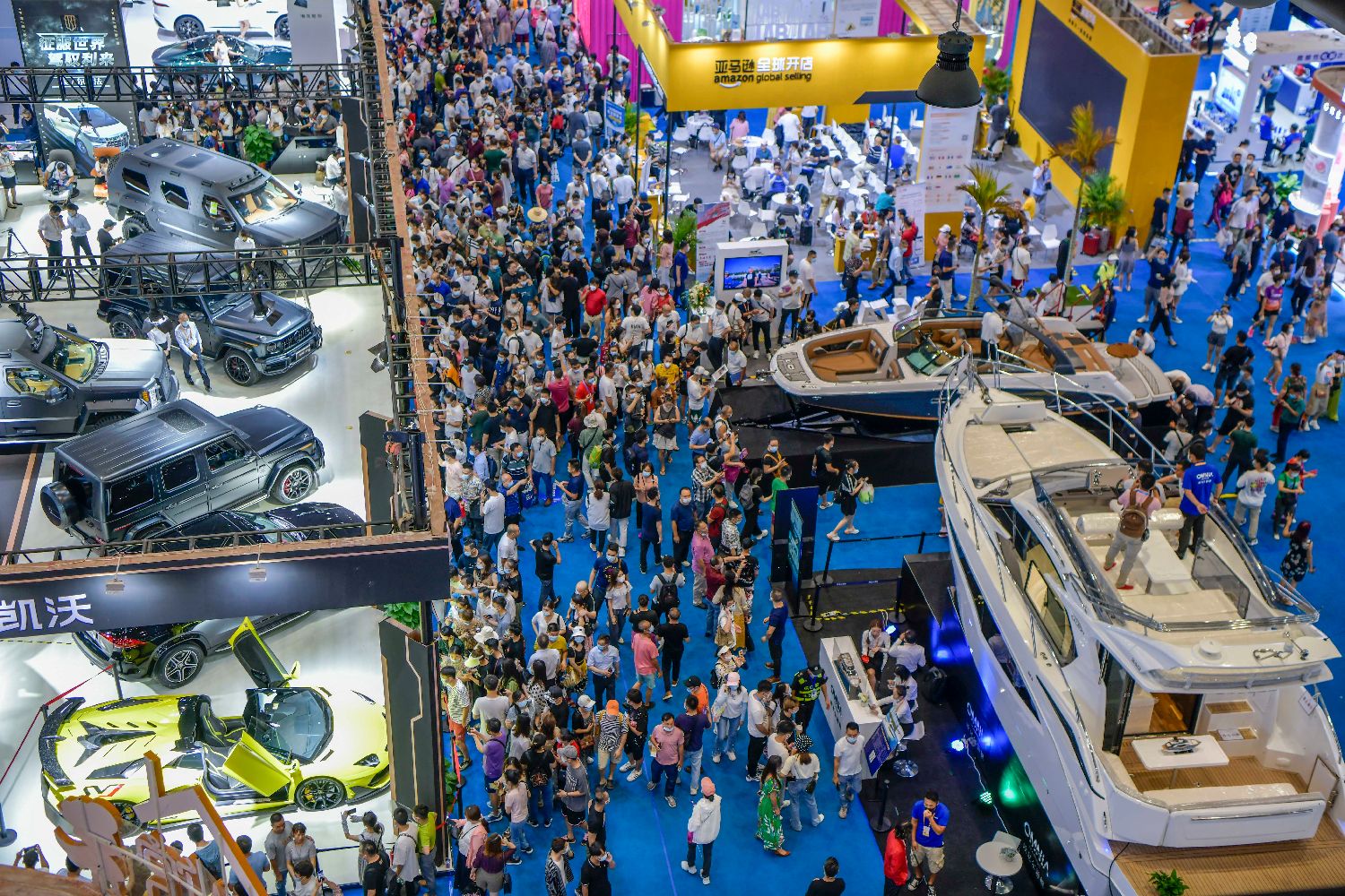 资料图为2021年5月10日,民众在海口参观首届中国国际消费品博览会的游艇、汽车展区。中新社