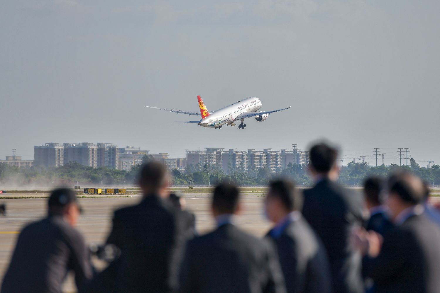 资料图为2021年12月2日,海口美兰国际机场二期投运后的首个出港航班顺利起飞。这意味着作为海南自贸港建设重大标志性工程的海口美兰国际机场二期扩建项目投入运营,实现机场双航站楼、双跑道运行模式。中新社