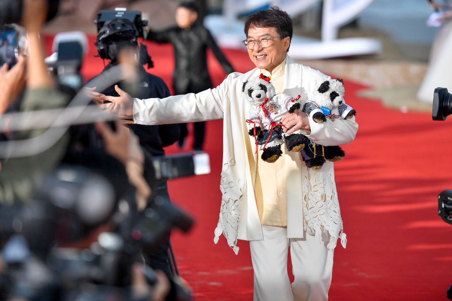 资料图为2018年12月16日,电影节形象大使成龙亮相红毯仪式,首届海南岛国际电影节闭幕式红毯在三亚举行。中新社