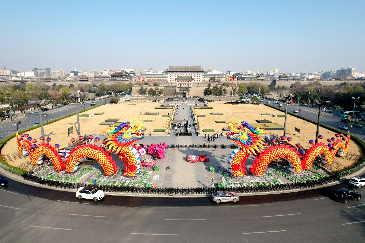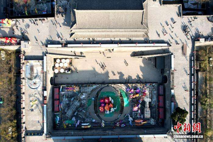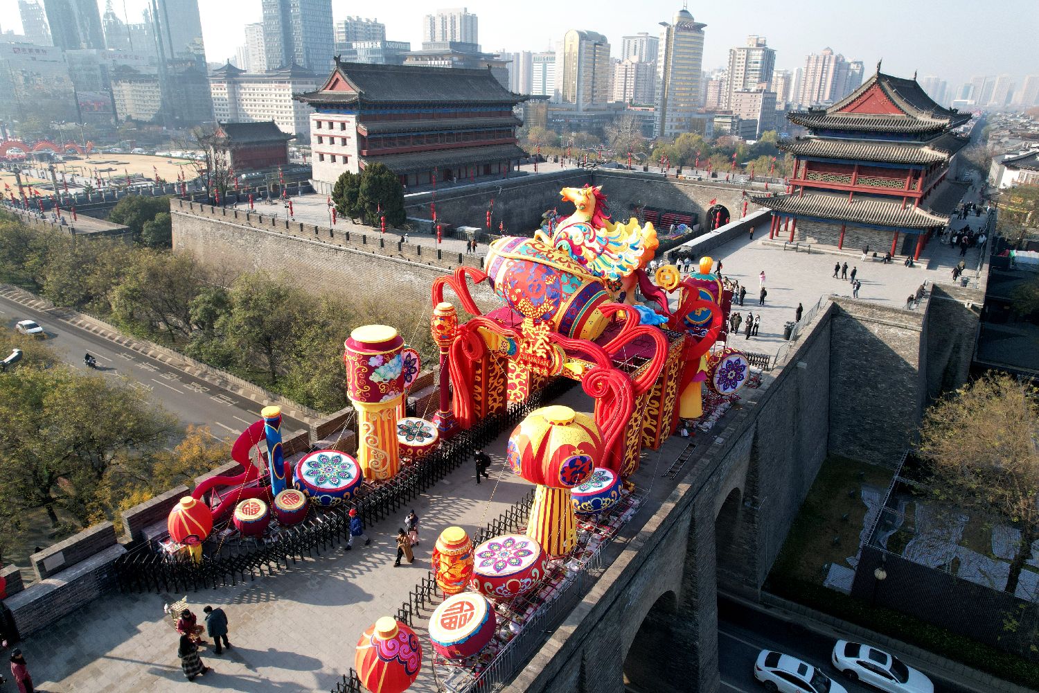每当城墙上的彩灯逐渐点亮,意味着新春的脚步近了。2026年“长安灯会•西安城墙”则提前到了2026年元旦,西安市民将有近四个月的时间在城墙上感受“长安灯如昼”的快乐。12月17日,灯会筹备工作有序进行中。图为南门城墙上的灯组。中新社