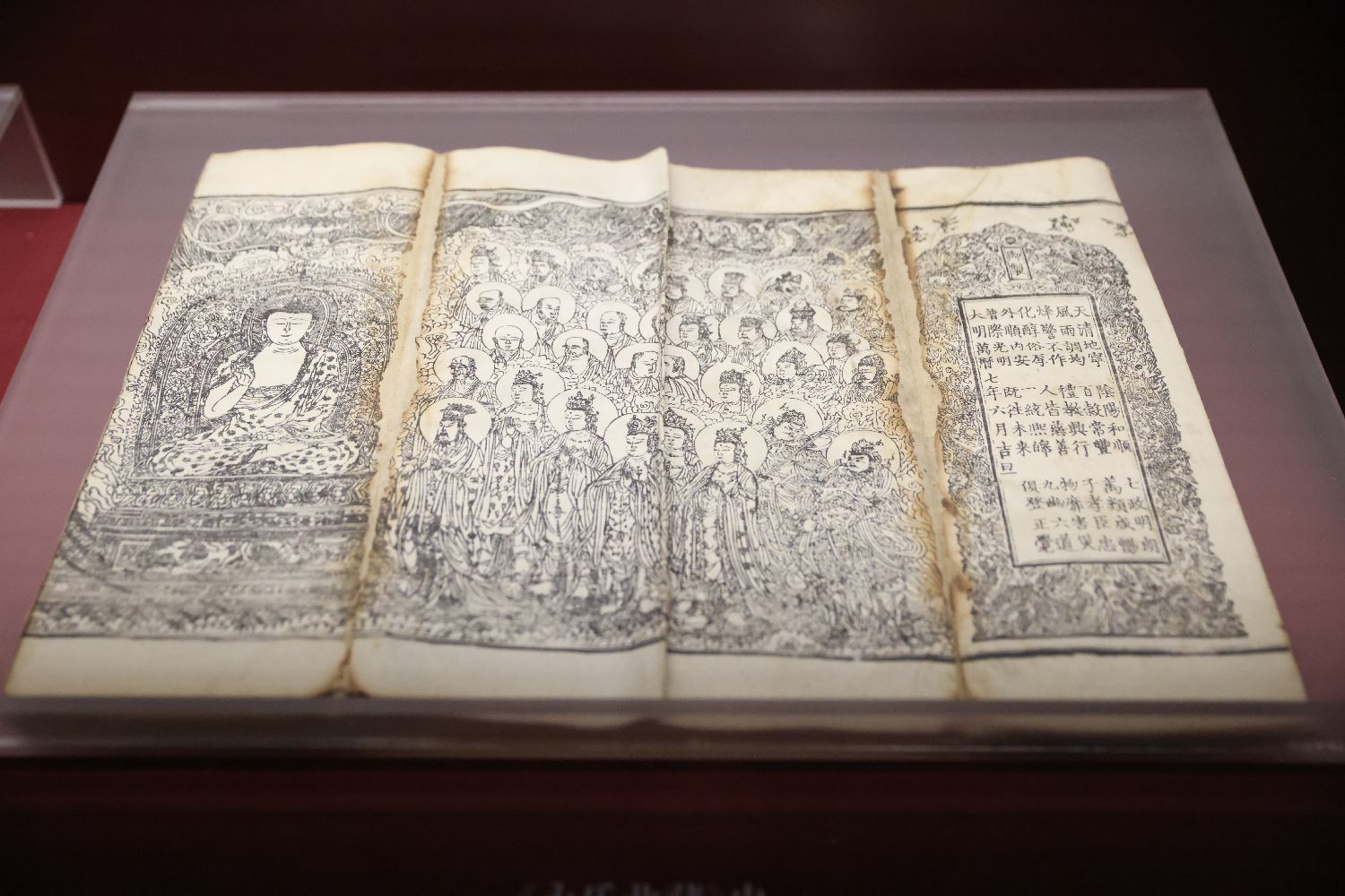 首次公开展出的《永乐北藏》史一万善同归卷第一。中新社