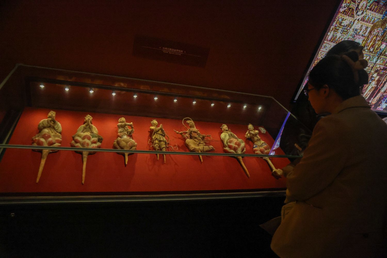 12月18日,“既往未来——小西天文物撷珍与悬塑艺术特展”在位于北京的国家典籍博物馆面向公众开放。展览共汇集50组84件文物,包括寺藏重要碑刻、明清金铜造像精品、《永乐北藏》珍本、悬塑文物残件等。小西天位于山西省隰县,原名千佛庵,因其保存的1978尊明代塑像而闻名。图为观众参观千佛庵大雄宝殿复原场景。中新社