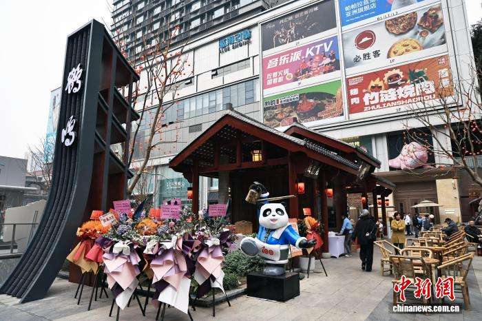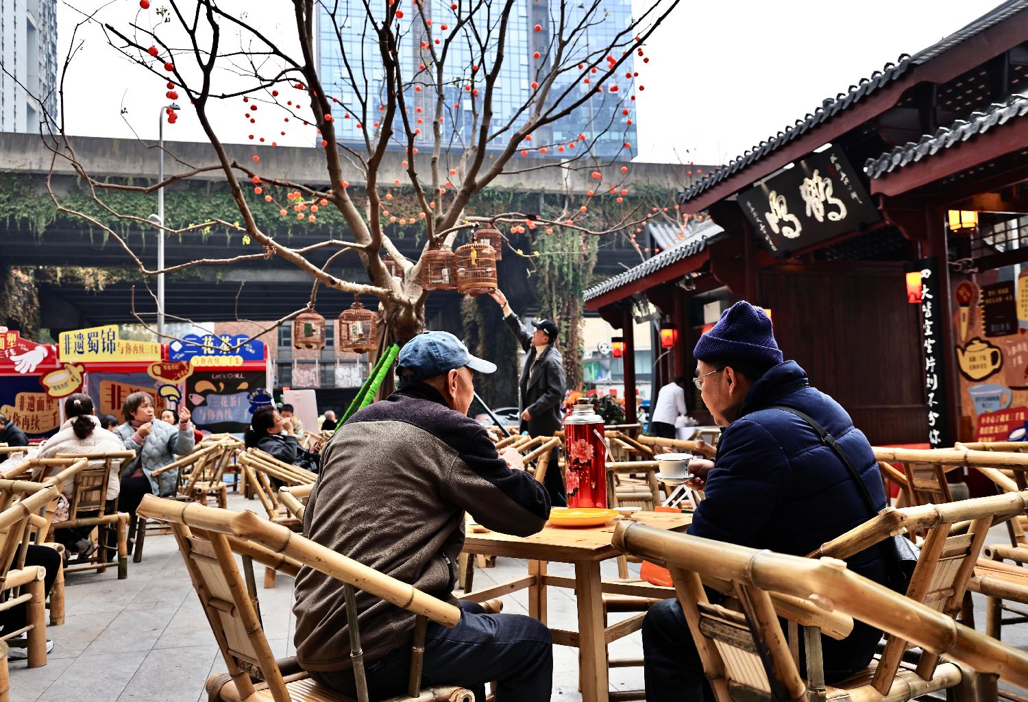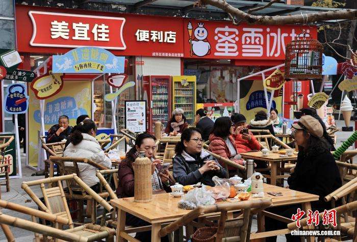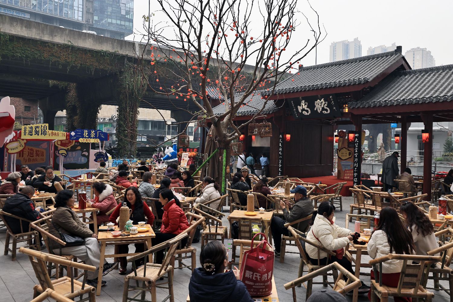 12月18日,游客在鹤鸣茶社“分店”打卡拍照。中新网