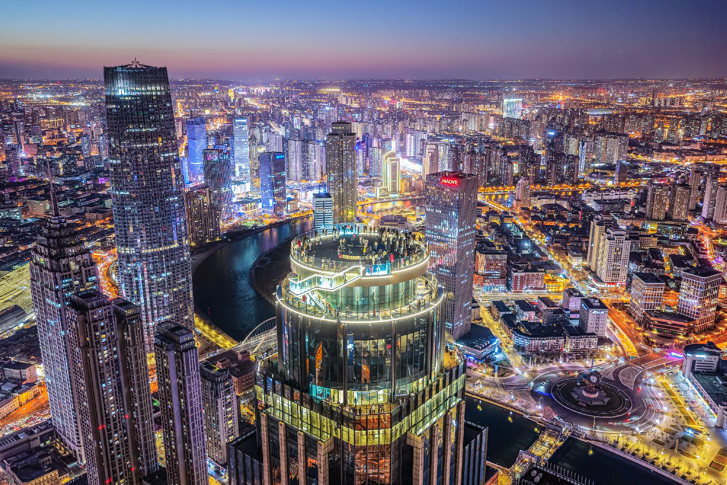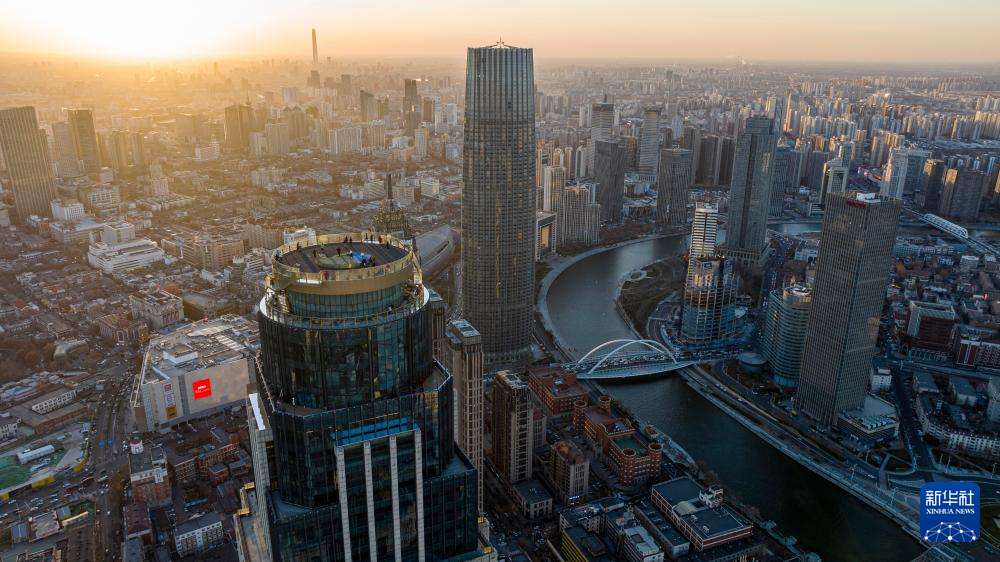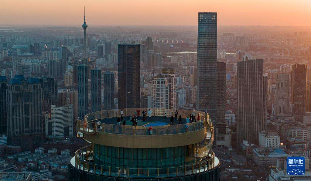 近日,坐落于天津和平区津湾广场核心位置的津湾云顶高空观景台正式对外开放,作为京津冀地区首座300米级室外高空观景平台,一经亮相便成为天津文旅新晋“顶流”,即便气温走低仍吸引大批市民和游客前去打卡。图为12月20日,民众在津湾云顶高空观景台观赏城市风景。(无人机照片)中新社