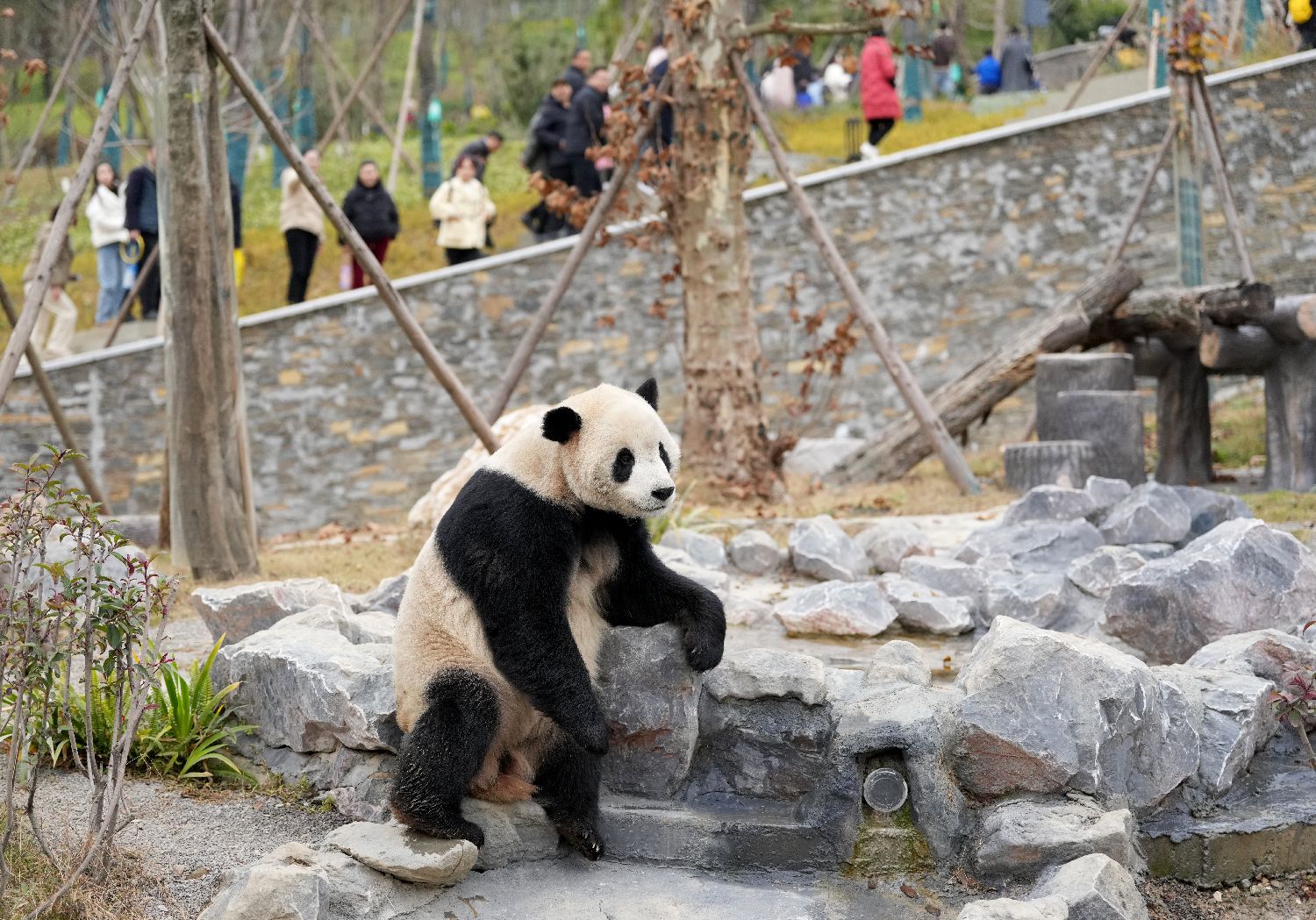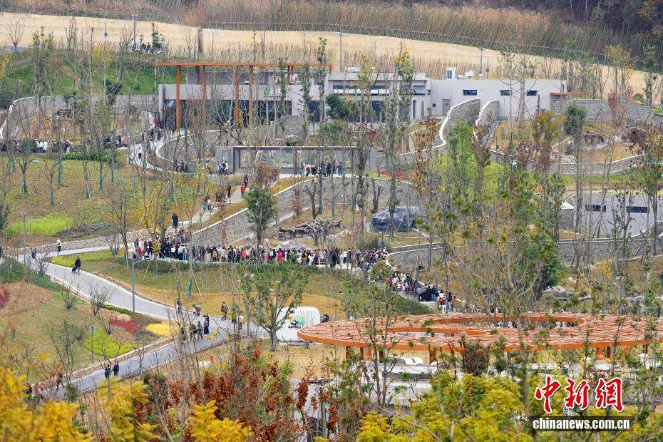 12月21日,记者走进位于四川绵阳科技城新区鼓楼山生态公园的绵阳中华大熊猫苑。绵阳中华大熊猫苑(中国大熊猫保护研究中心绵阳基地)用地面积约120公顷,划分五大功能区,配套建设54套大熊猫圈舍,构建起覆盖大熊猫繁育、幼仔抚育、成年展示、养老救护的全生命周期综合服务体系。图为民众在绵阳中华大熊猫苑参观。中新社