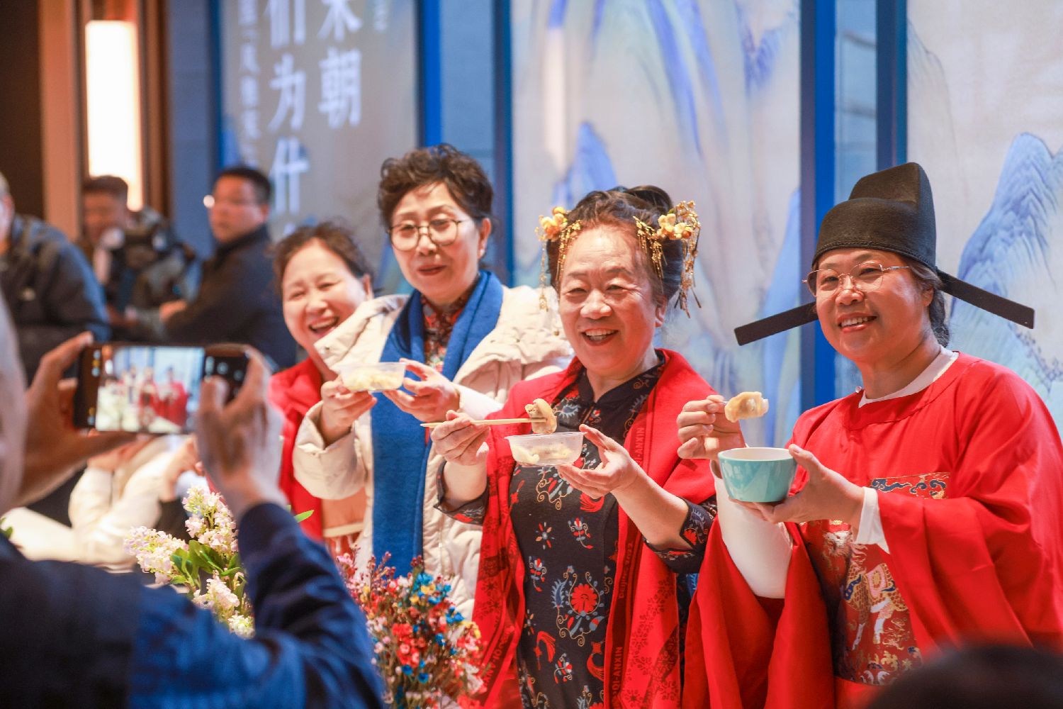 12月21日是中国二十四节气中的冬至,各地开展包饺子、民俗体验、美食文化等丰富多彩的活动欢度冬至。图为当日,北京朝阳区中建宸园小区内举行“画九待春归,冬至大如年”主题冬至民俗活动,居民穿上中国传统服装吃饺子。中新社