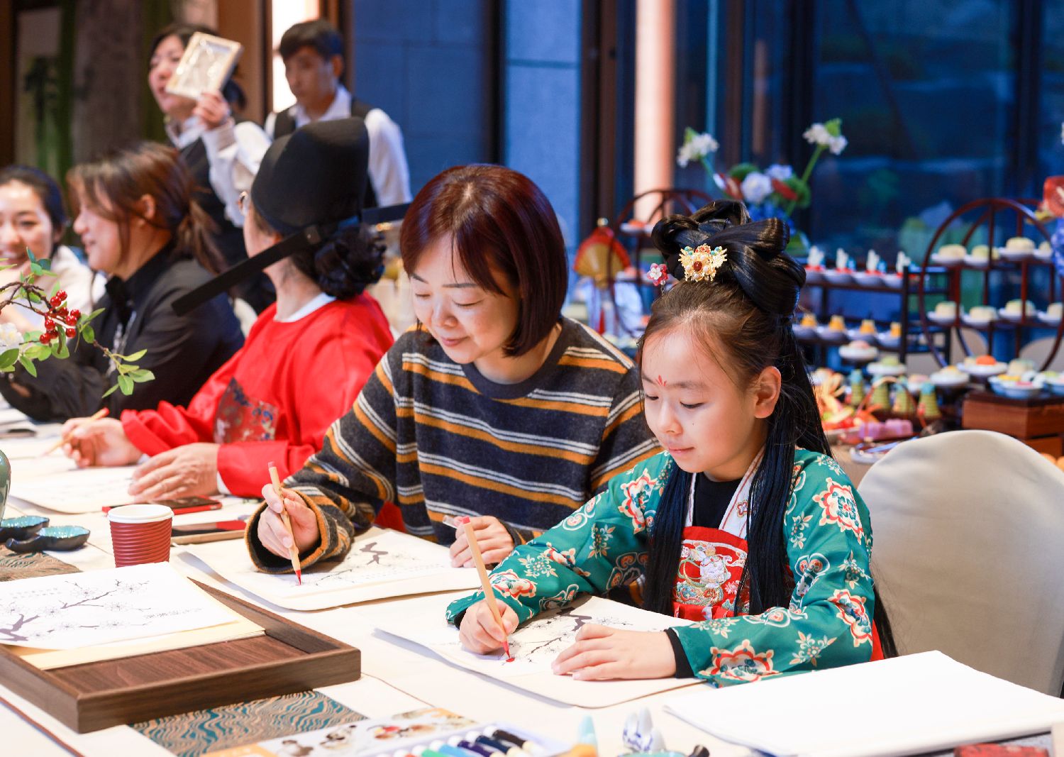 12月21日,北京朝阳区中建宸园小区内举行“画九待春归,冬至大如年”主题冬至民俗活动,小朋友和家长共同学习画“九九消寒图”。中新社