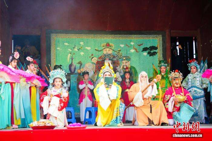 三门县亭旁镇杨家村举行的祝寿戏表演。中新网