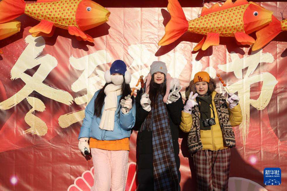 12月21日,游人在北极村活动现场留影。新华社
