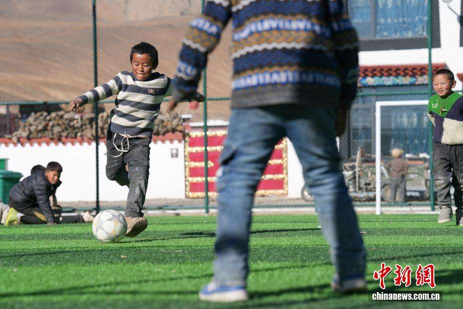 12月24日,森嘎村的孩子们在踢足球。中新网