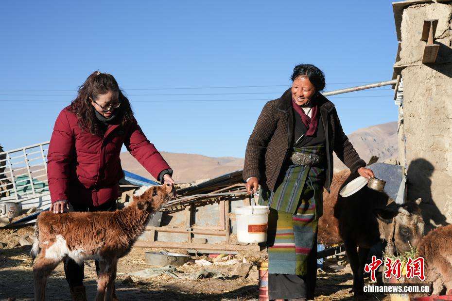 12月24日,森嘎村村民准备挤牛奶。中新网
