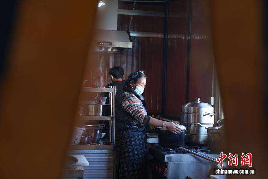 12月24日,森嘎村村民在自家灾害重建的新房里经营茶馆,烟火气十足。中新网