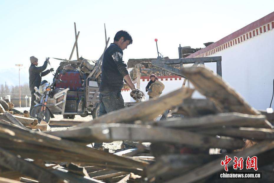 12月24日,森嘎村村民在新房前割柴火。中新网