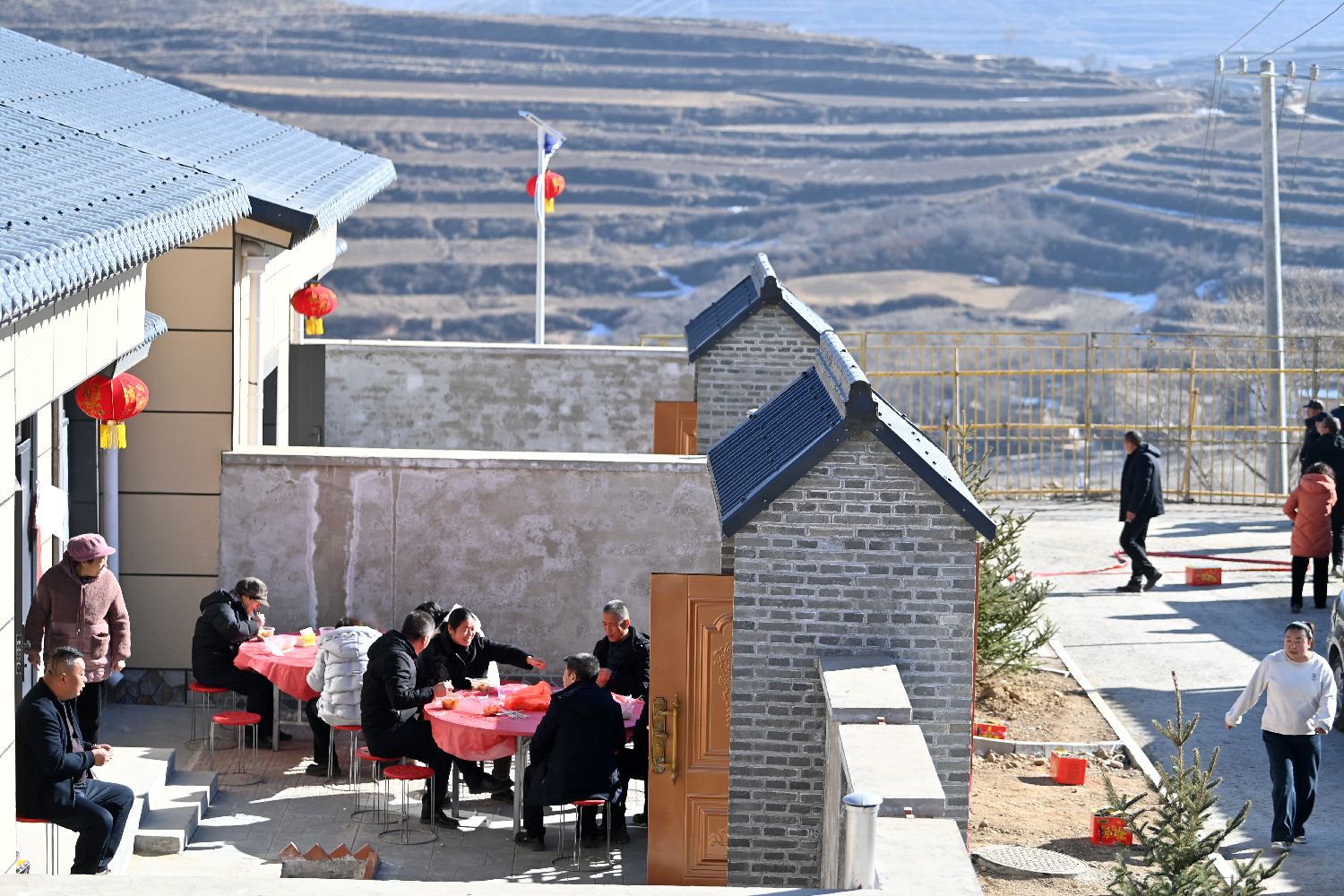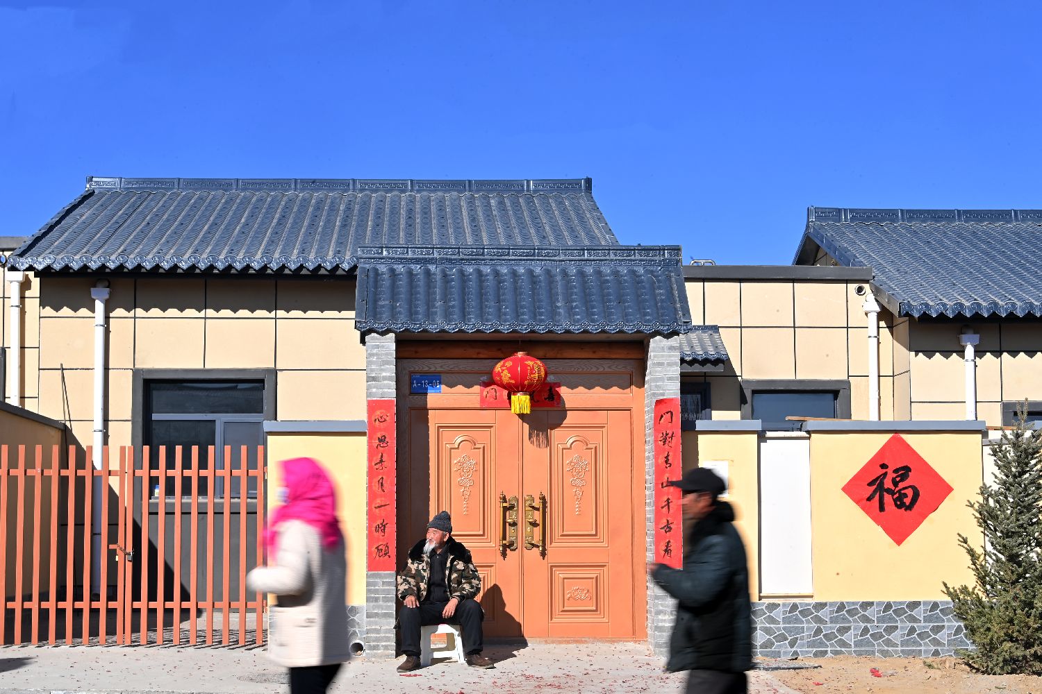 12月29日,甘肃省兰州市榆中县举行山洪灾害灾后重建集中搬迁入住活动,全县6个集中安置点325户受灾民众全部搬进新居。2025年8月初,甘肃省兰州市榆中县遭遇连续强降雨引发山洪灾害,导致部分乡镇的房屋、道路等基础设施严重受损。图为在榆中县旧庄沟村集中安置点,村民在新房前晒太阳。中新社