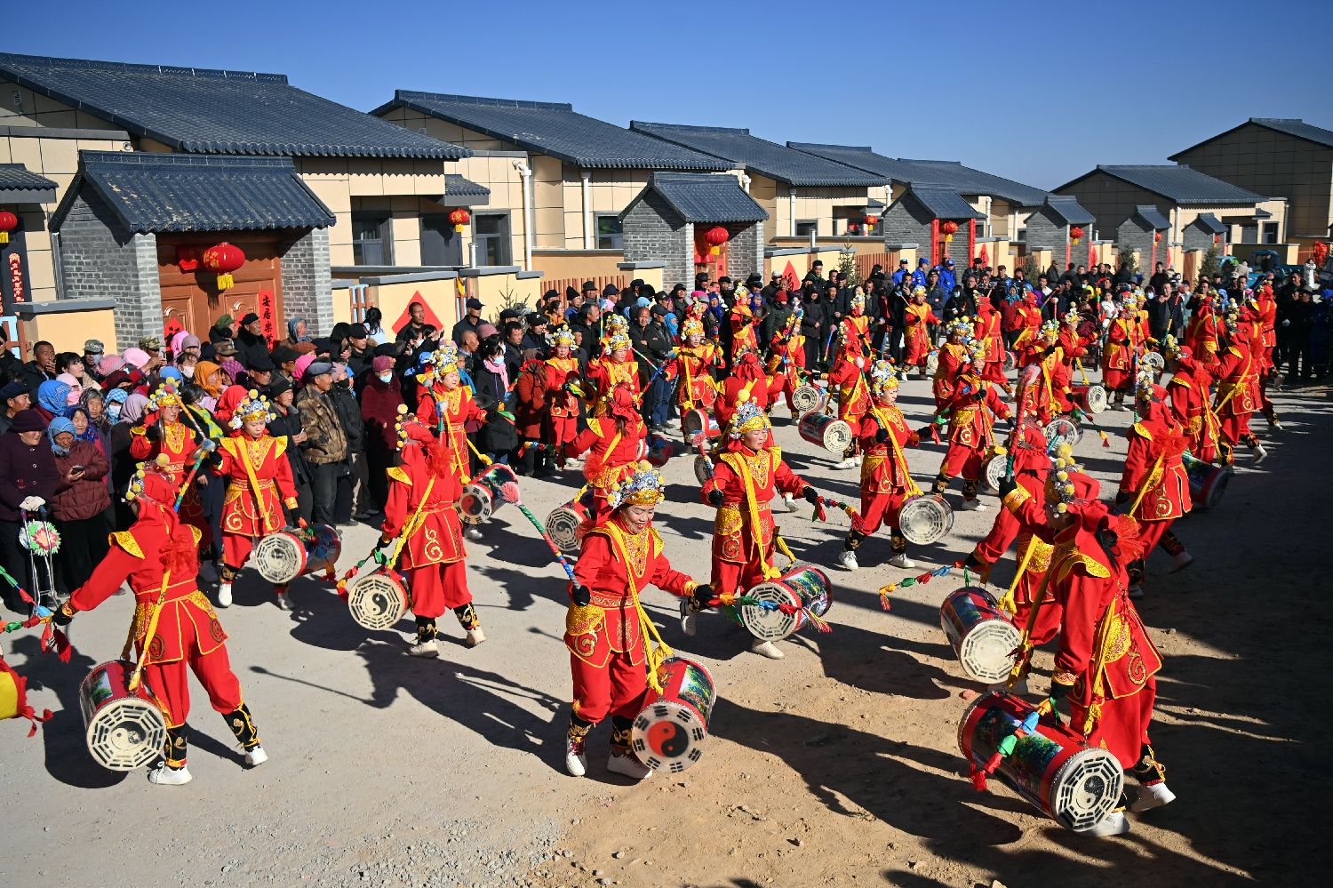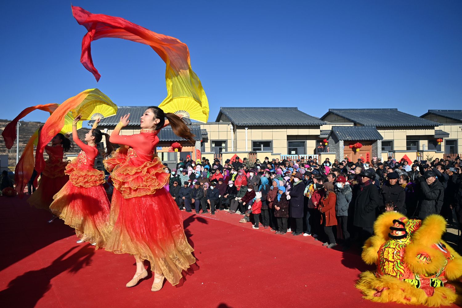 12月29日,榆中县旧庄沟村集中安置点民众观看文艺演出。中新社