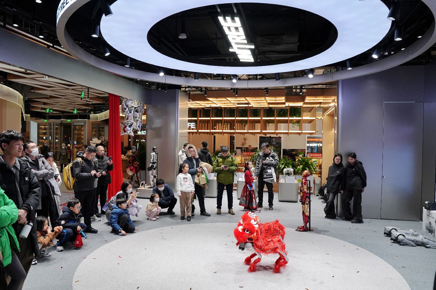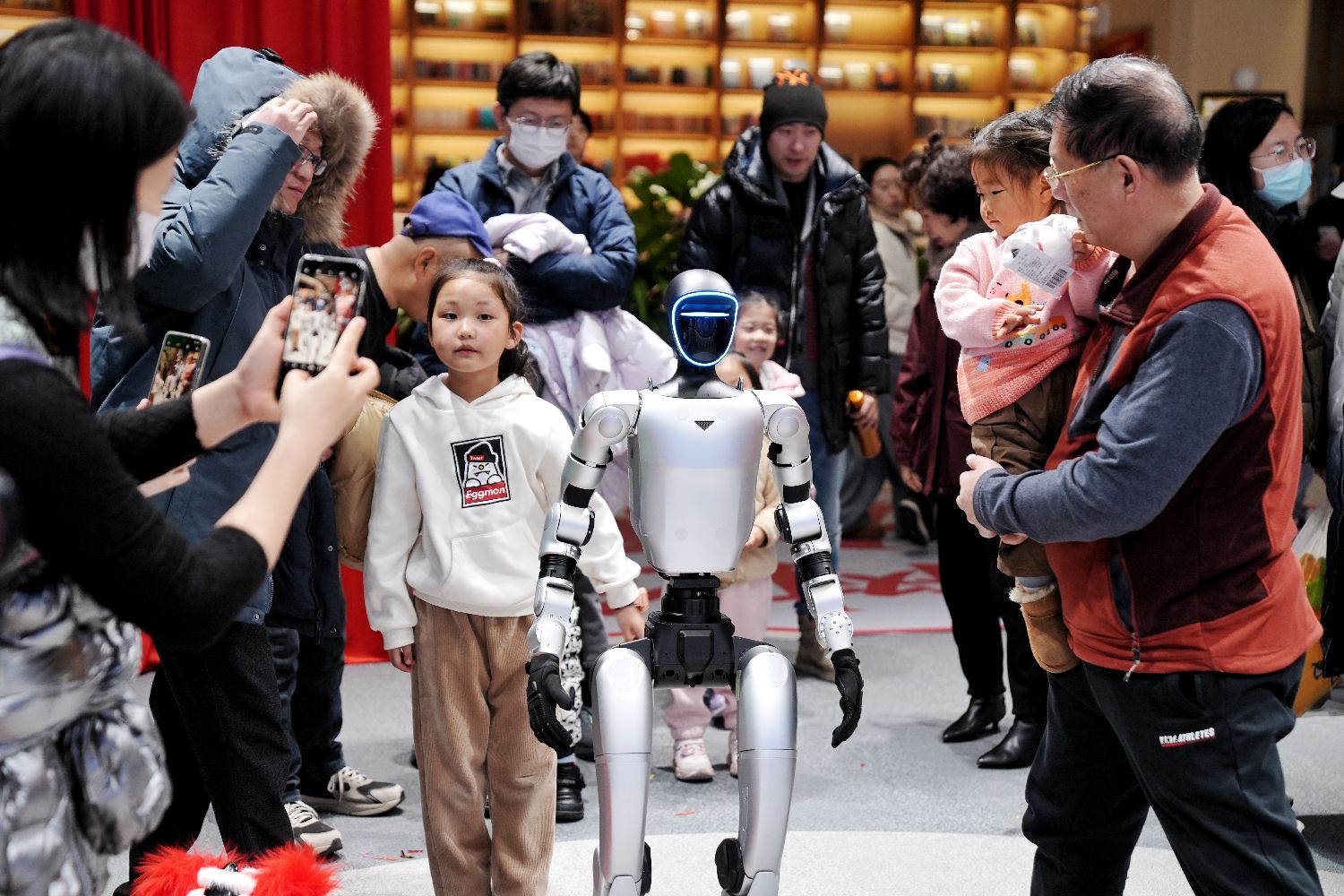 民众与店内的机器人互动。